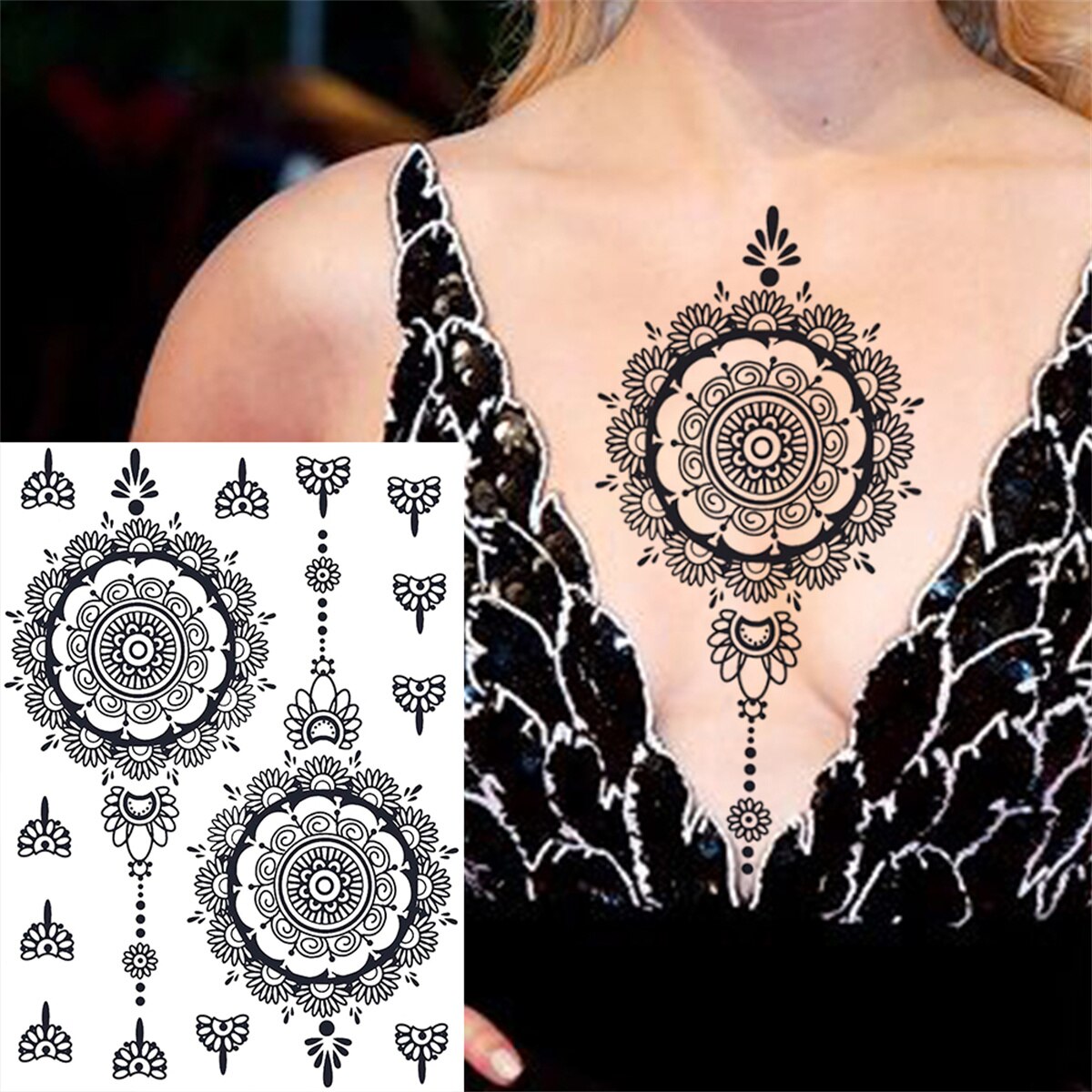Mandala Flower Temporary Tattoos For Women Girls Henna Snake Tattoo Sticker Black Tribal Elephant Ganesha Fake Jewelry Tatoo Arm