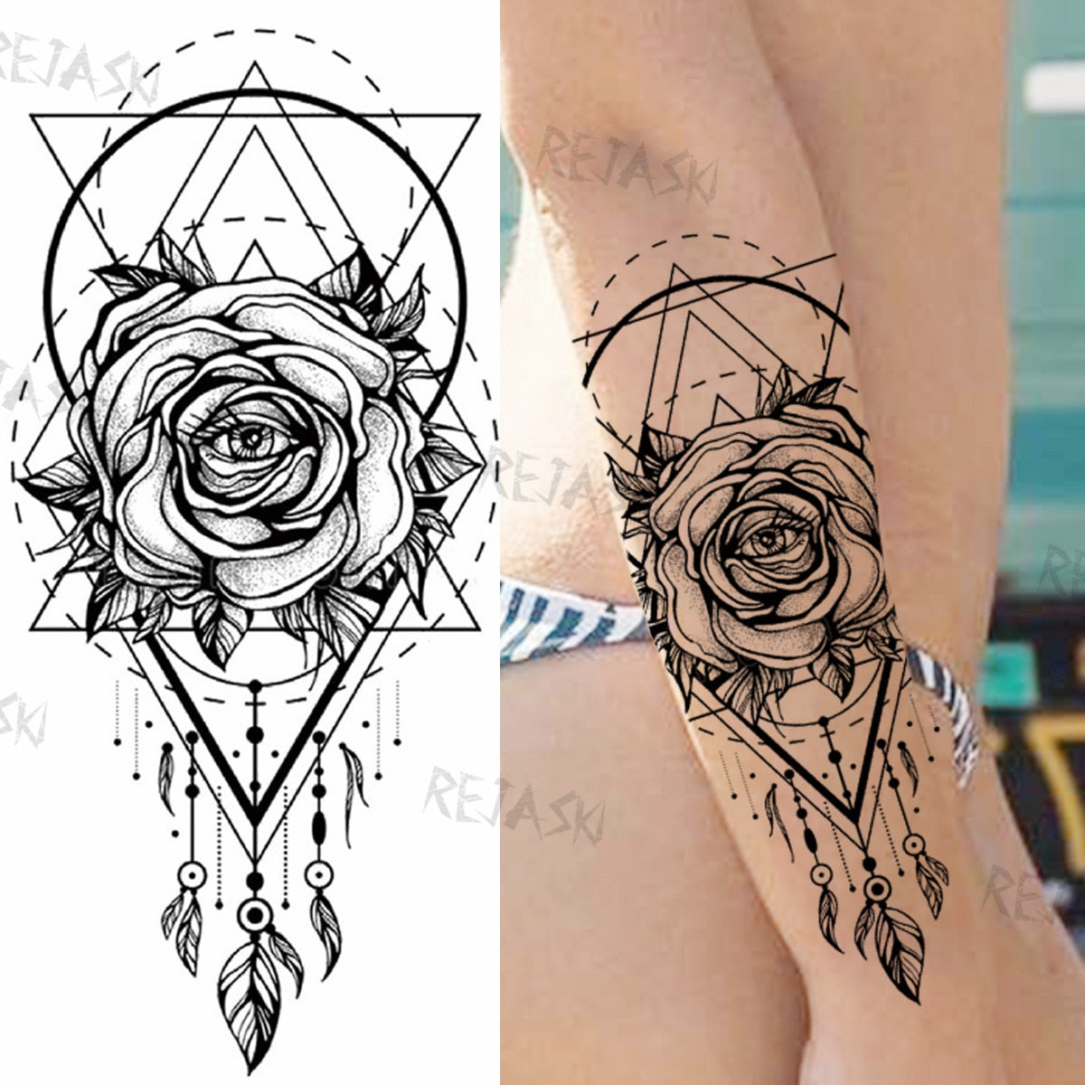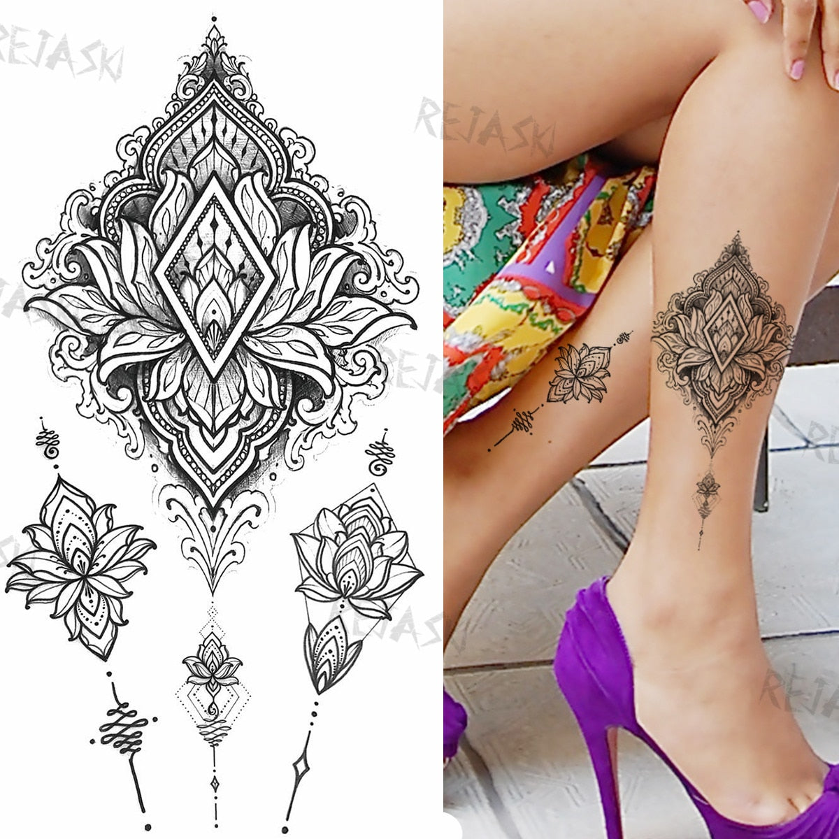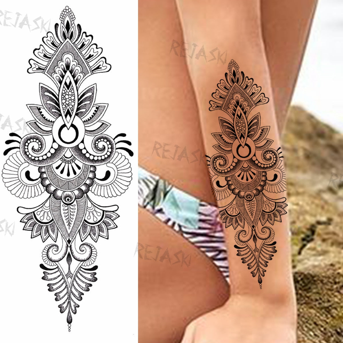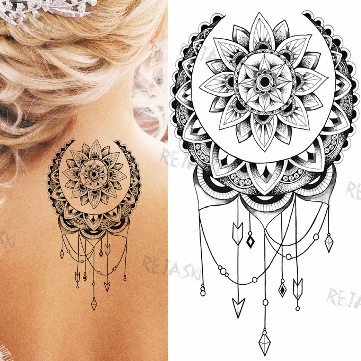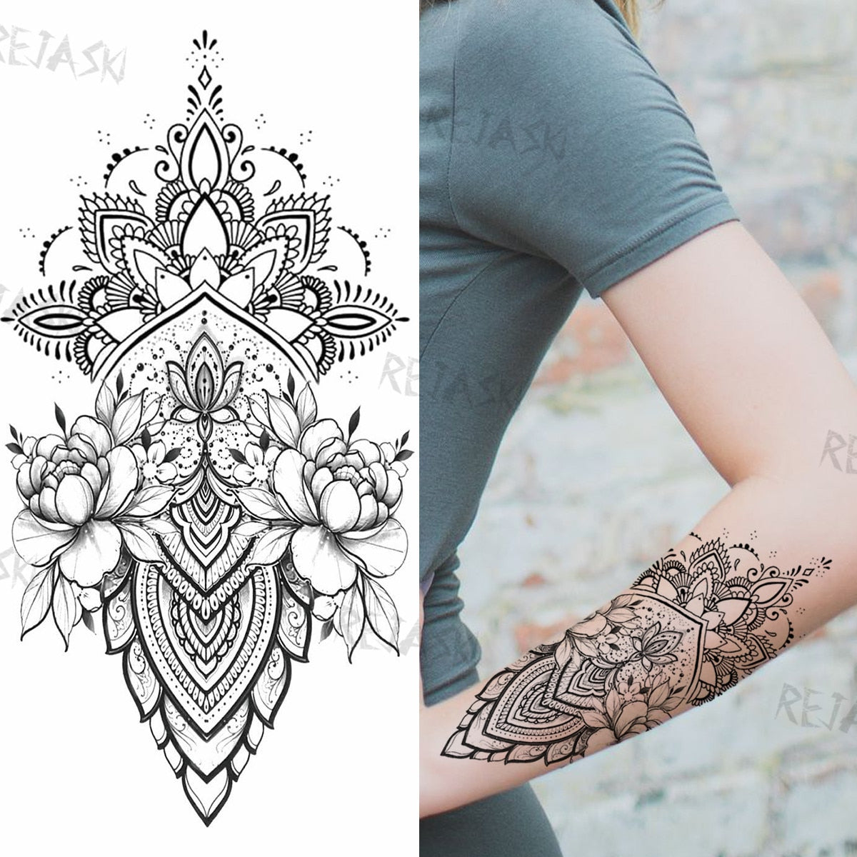 Mandala Flowers Temporary Tattoo For Women Black Henna Mehndi Tattoos Sticker Rose Lace Owl Fake Jewelry Tatoos Body Chest Back