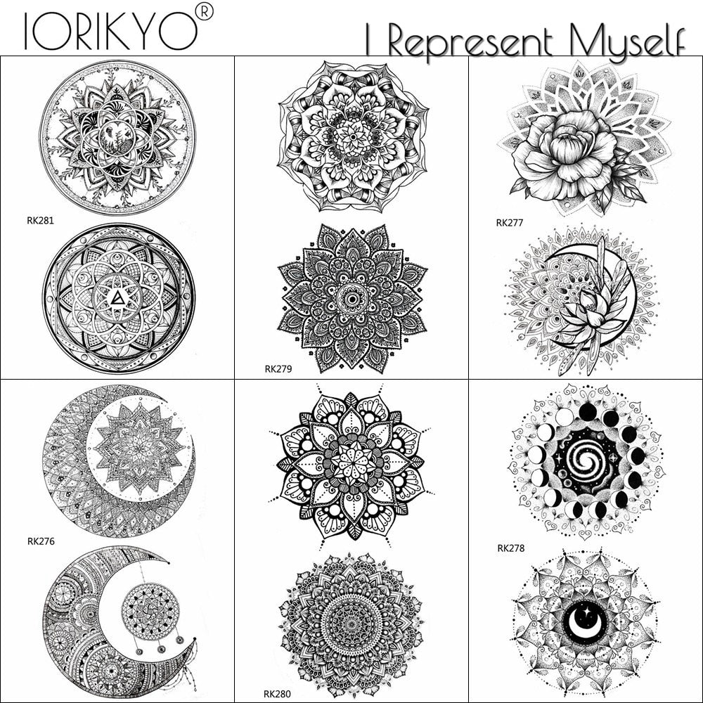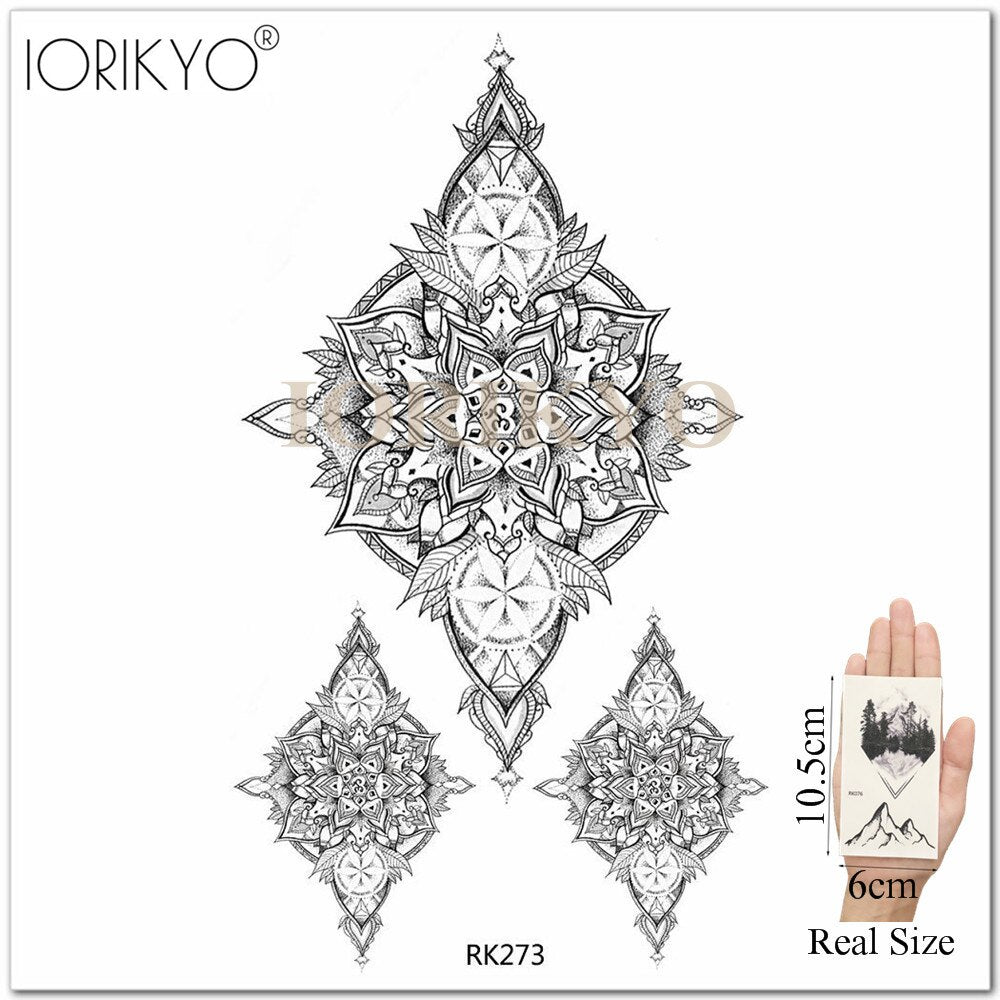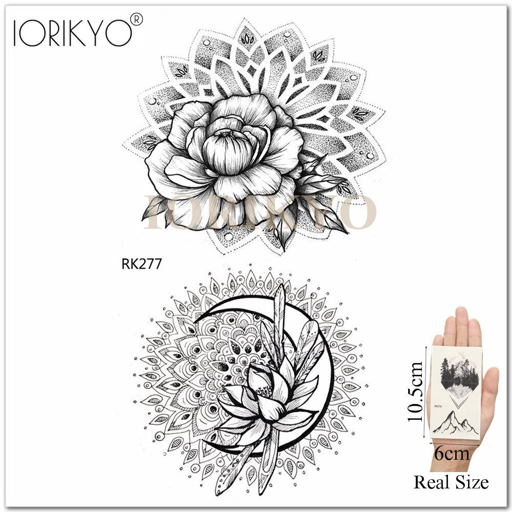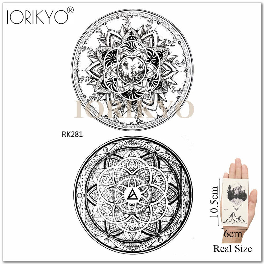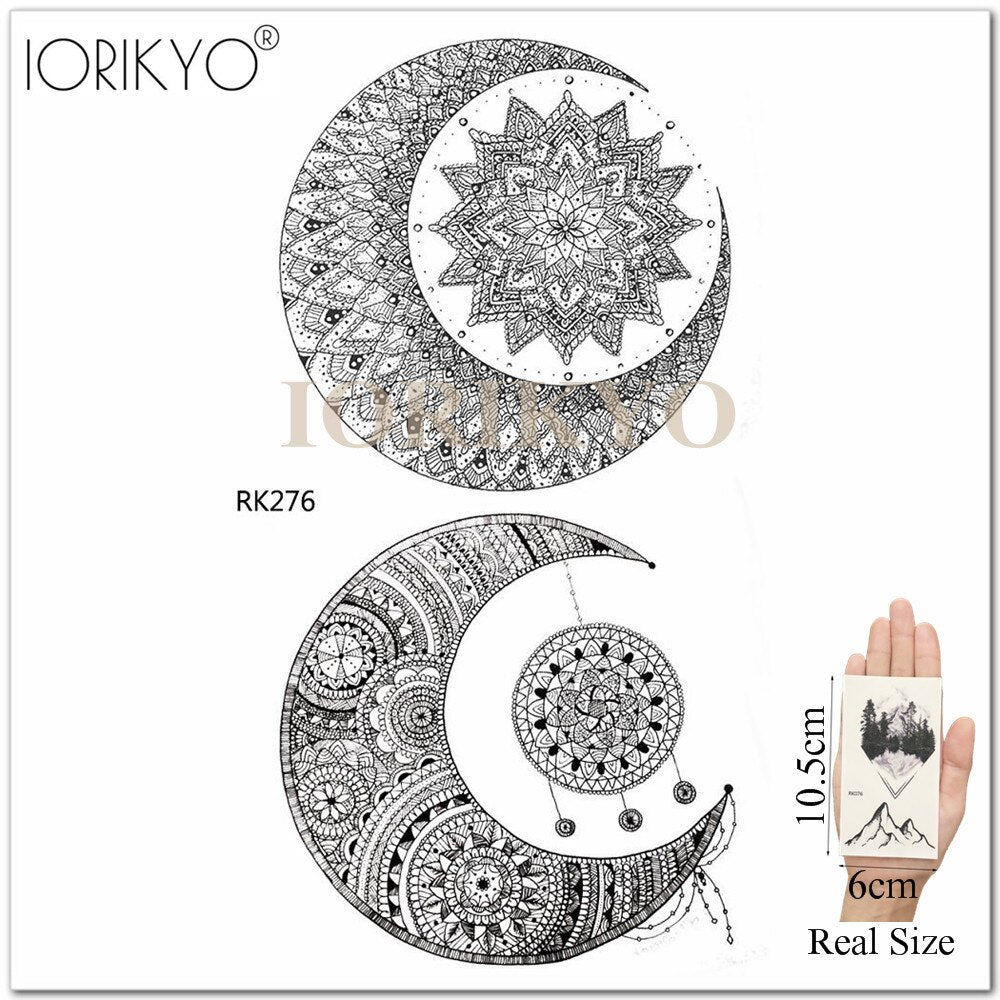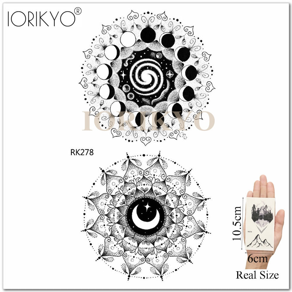 Mandala Henna Flower Fake Tattoo Arm Body Stickers Women Arm Temporary Tattoo Girls Ankle Lace Fake Tatoo Round Black Moon