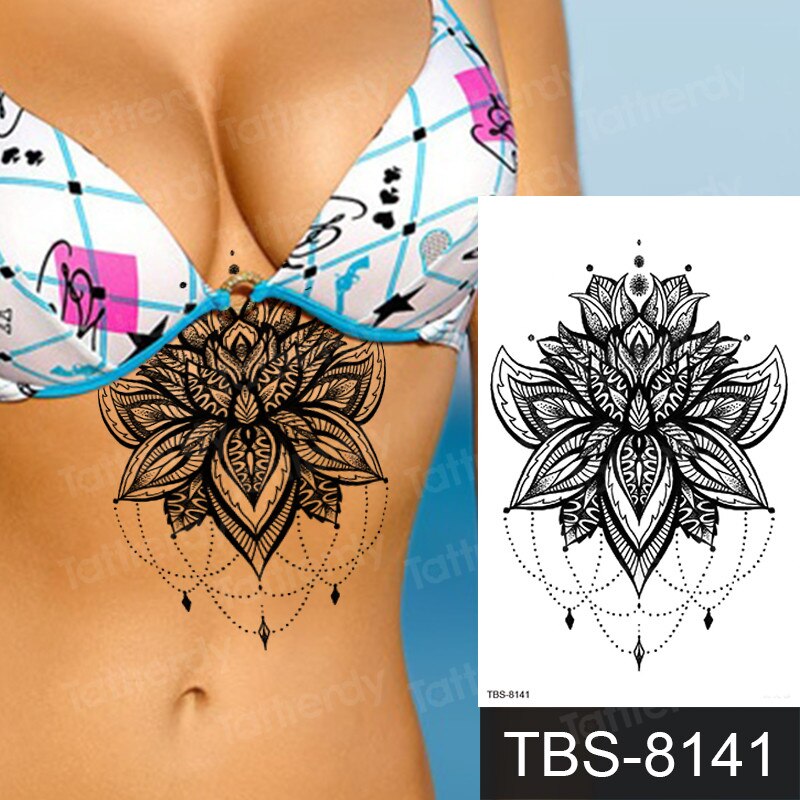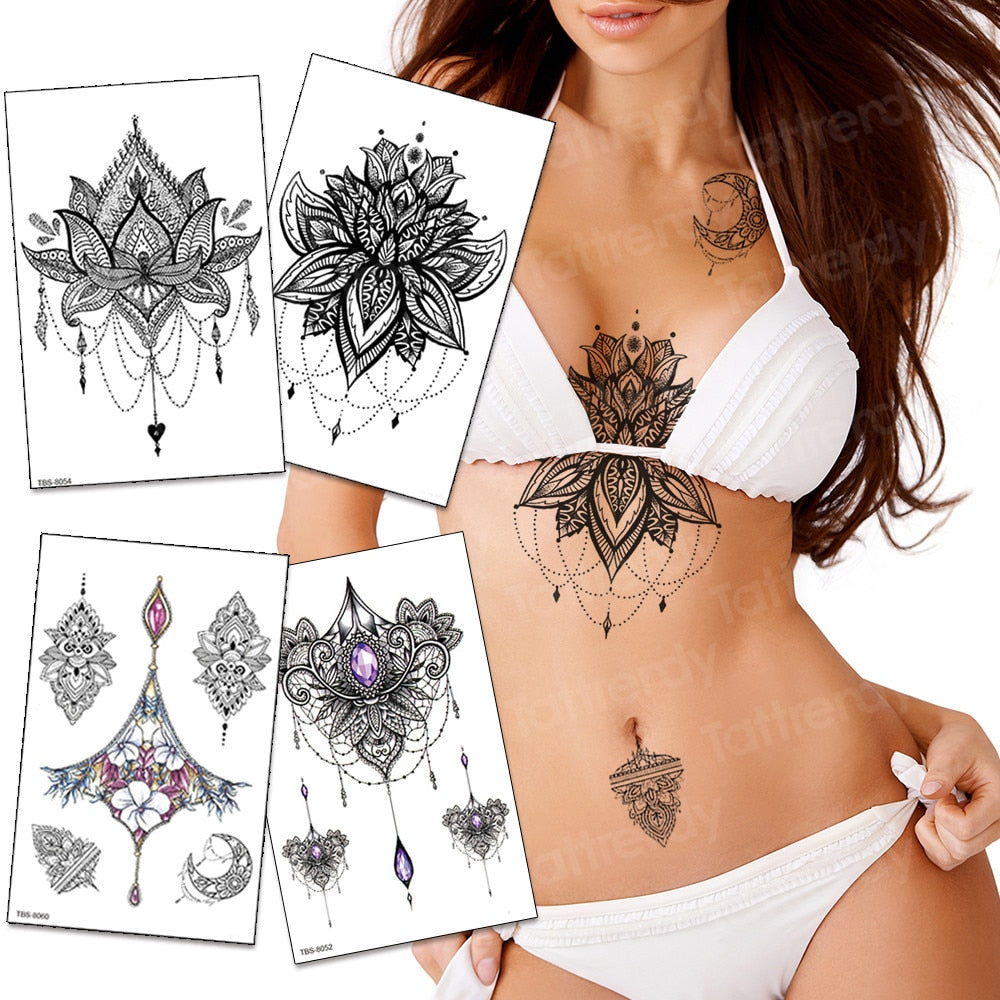 mandala temporary tattoo sticker lace black henna sex tattoo for woman under breast tattoo underboob sketches tattoo designs