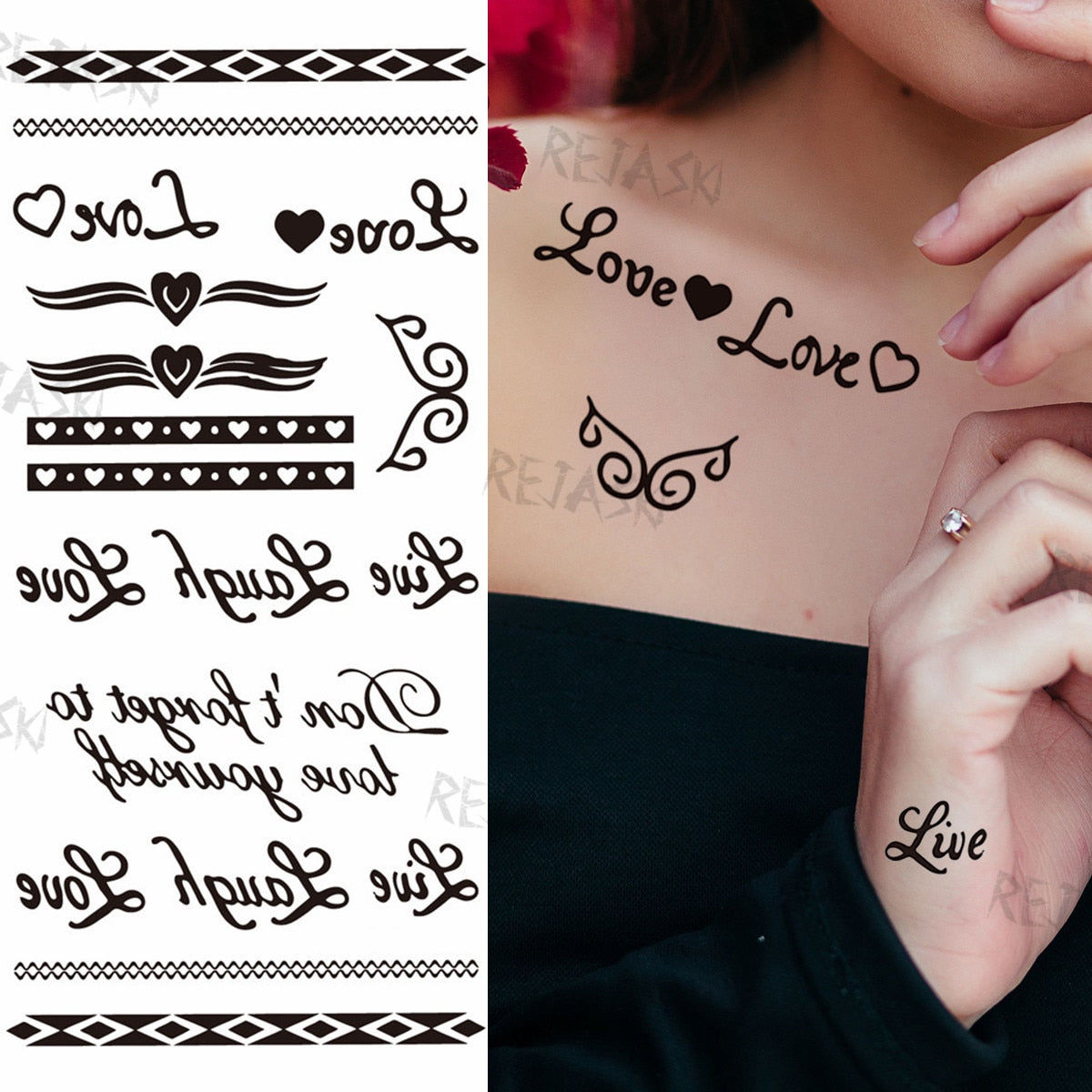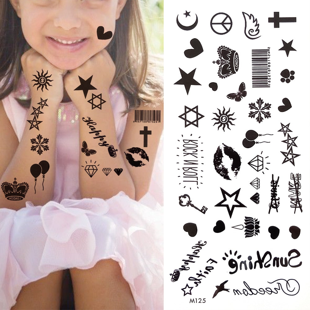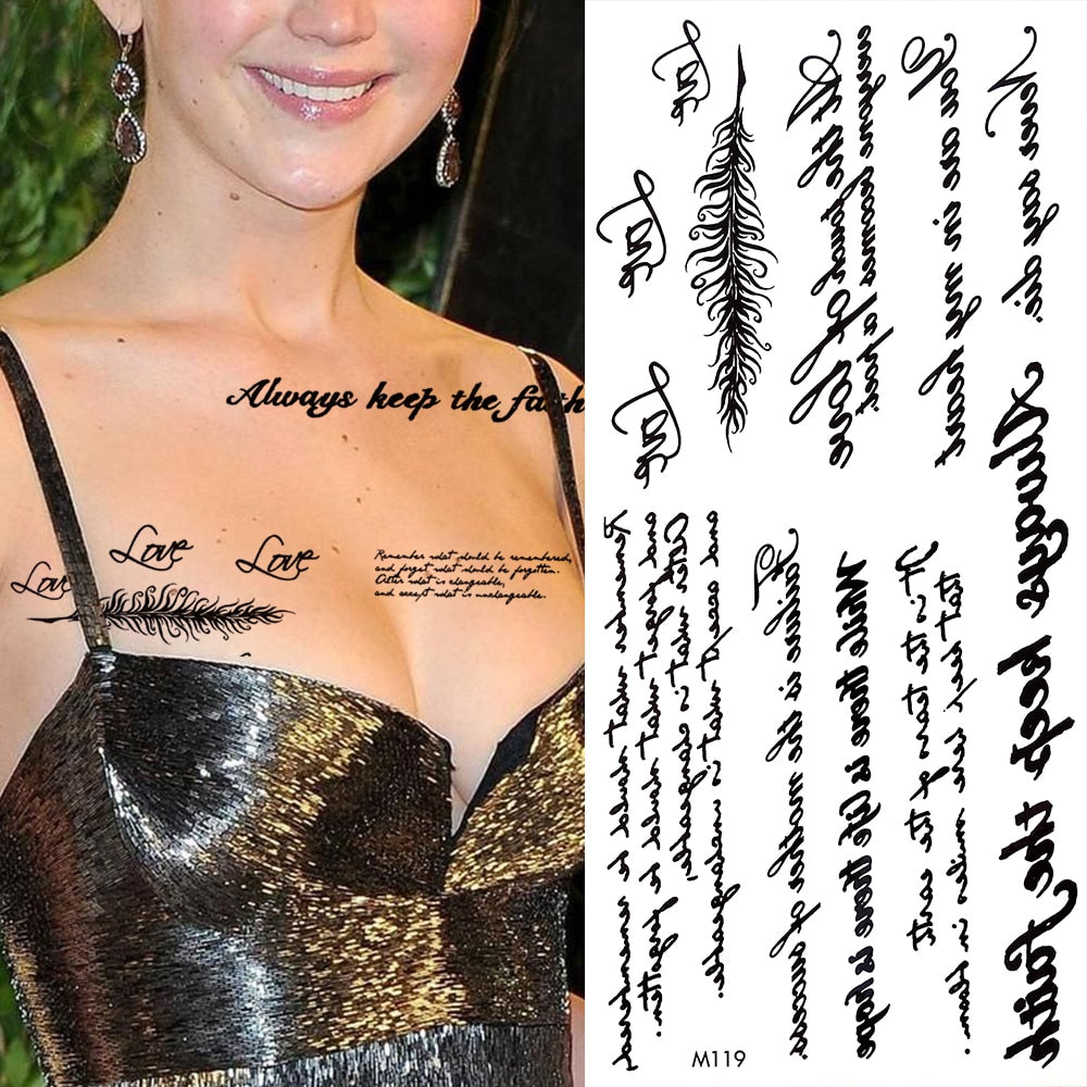 Minimalist Letter Temporary Tattoo For Children Women Small Word Tattoos Sticker Black Endless Heart Fake Tatoos Chains Clavicle