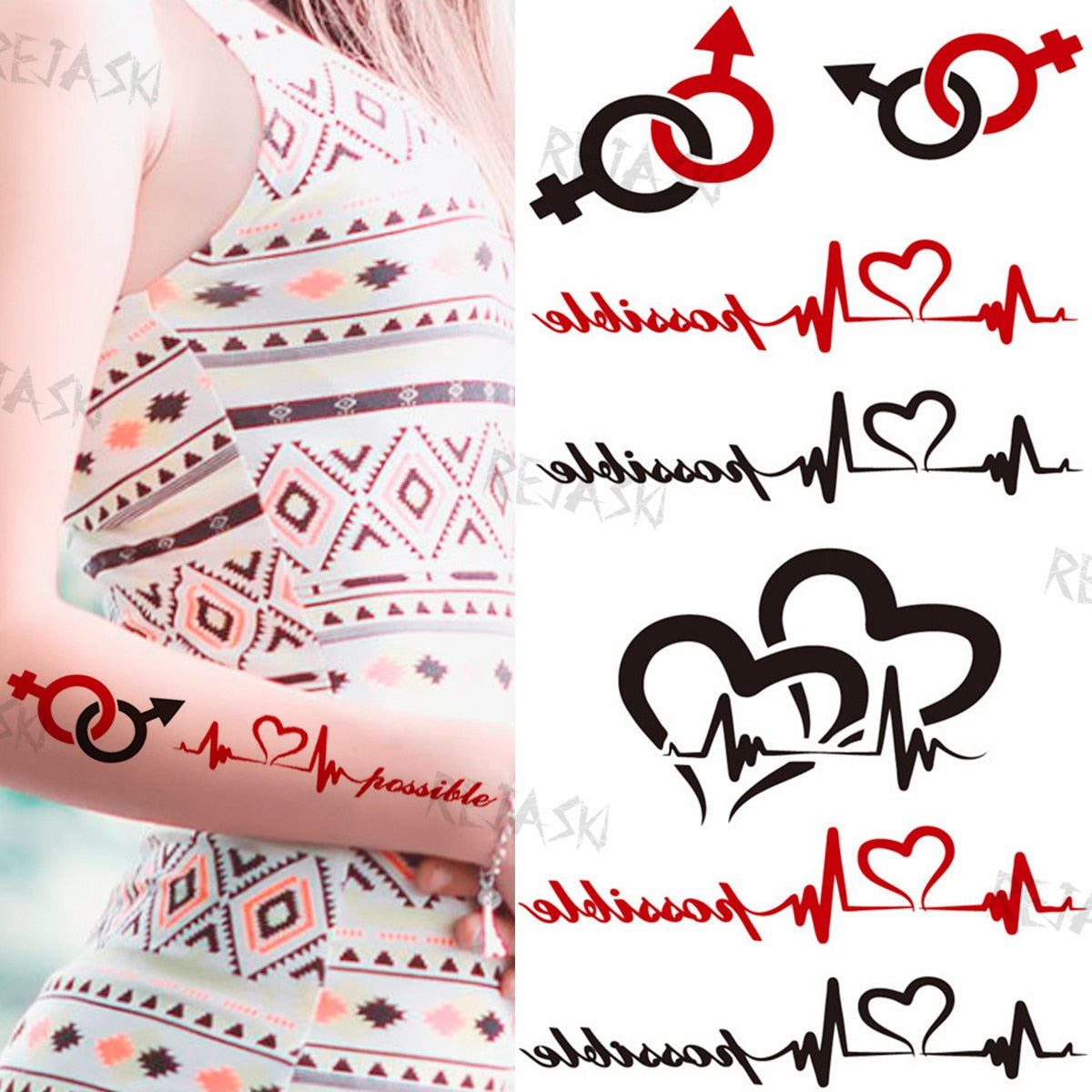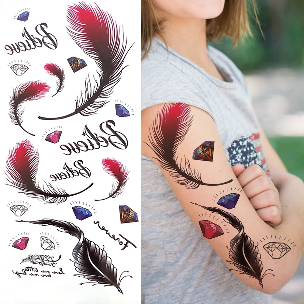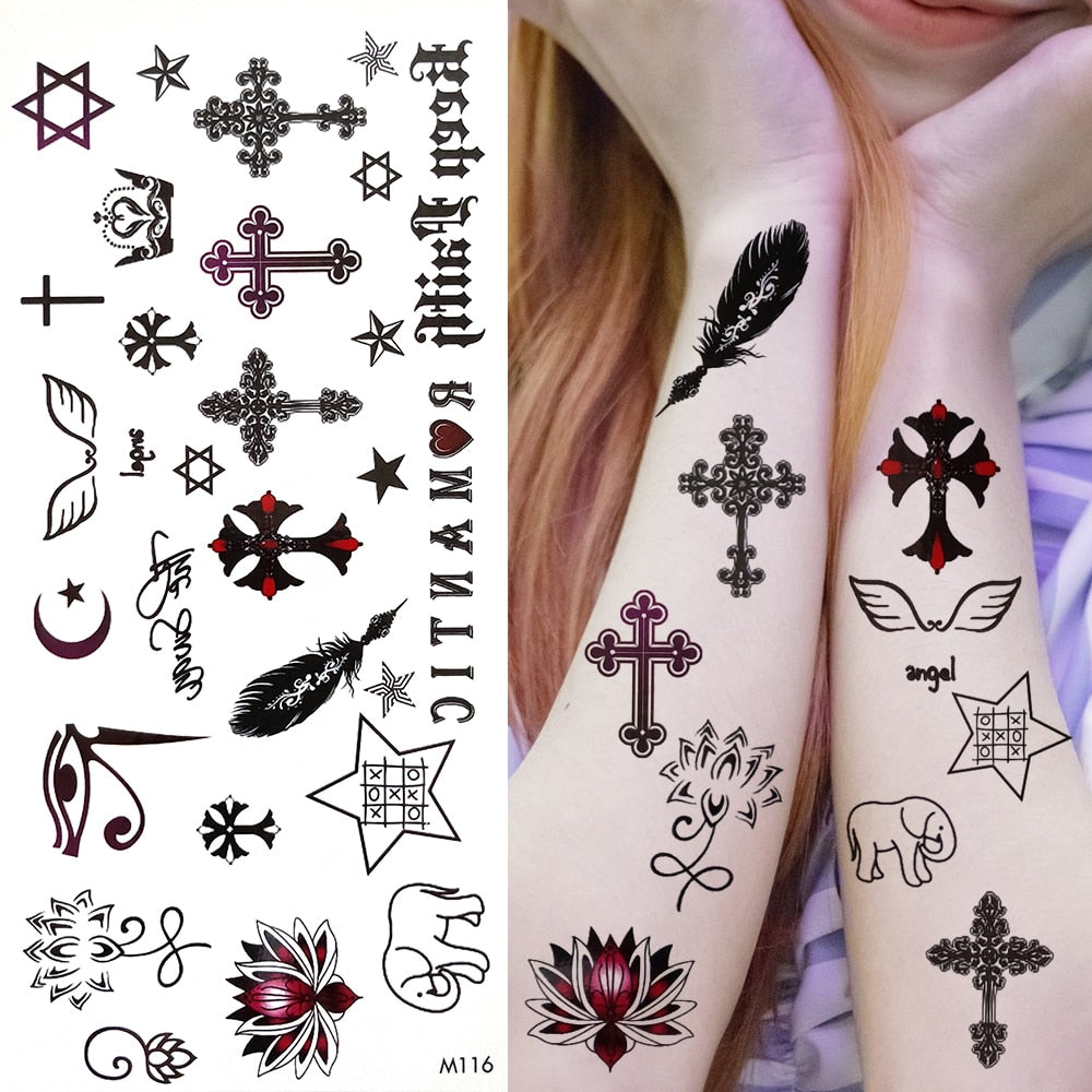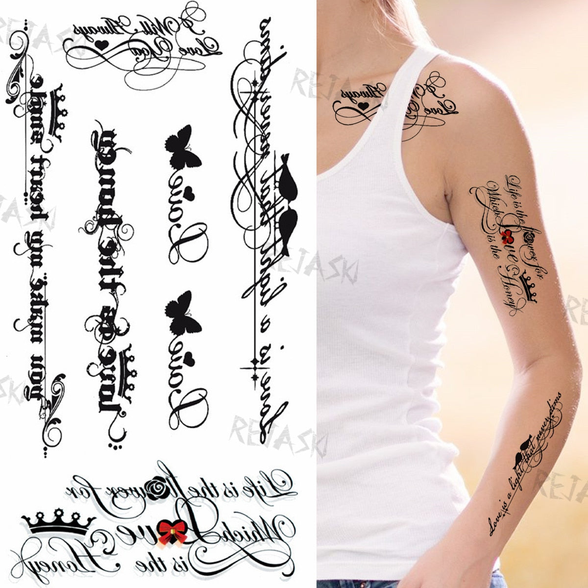 Minimalist Letter Temporary Tattoo For Children Women Small Word Tattoos Sticker Black Endless Heart Fake Tatoos Chains Clavicle