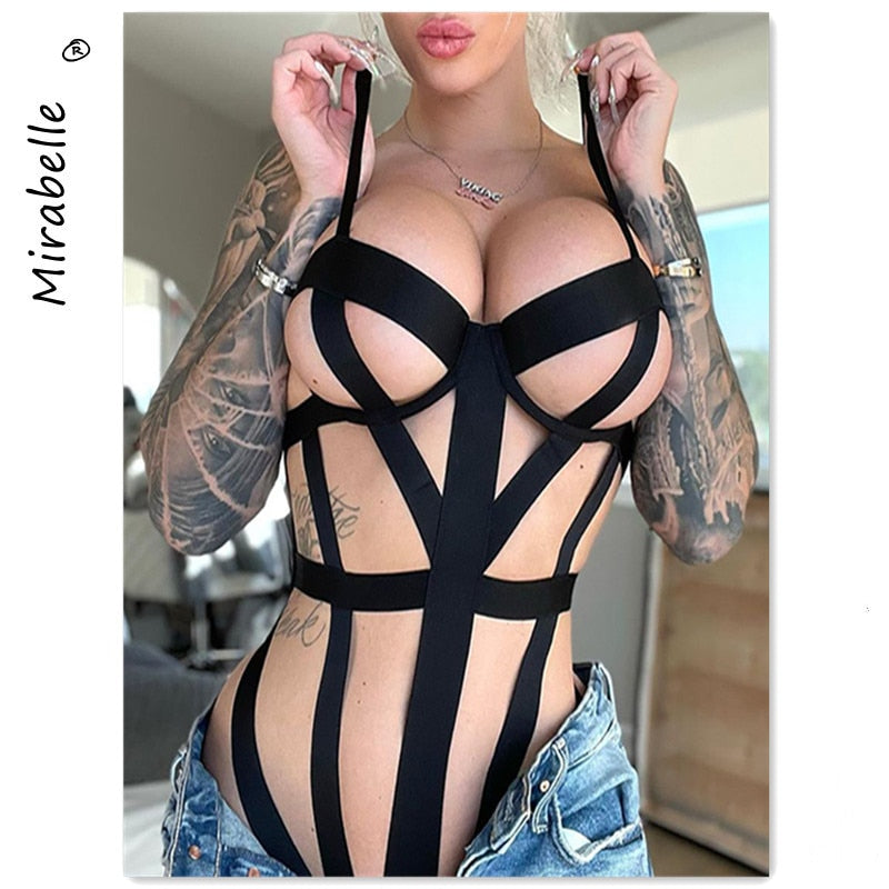 MIRABELLE Bodysuit Women Bandage Cross Exotic Costumes Hollowed Out Sensual Lingerie Woman Black Sexy Bottom Whore Porn Body Use