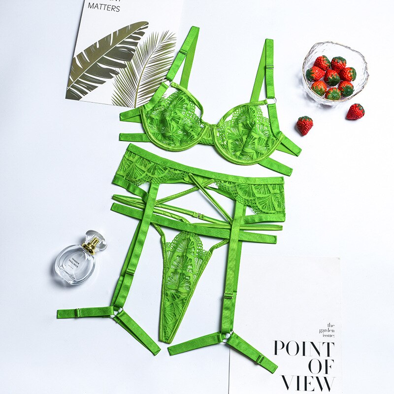 MIRABELLE Sensual Lingerie Sexy Hollow Out Exotic Costumes Lace Bandage Underwear Hot Porn Outfits Bra and Panty Set Garters