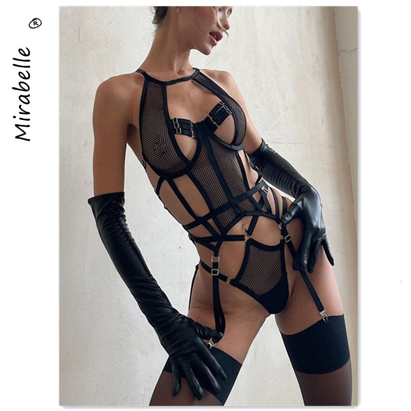 MIRABELLE Sexy Lingerie Erotic Mesh Bodysuit Women See Through Halter Sensual Lingerie Sex Suit Hot Porn Exotic Costumes Bodys