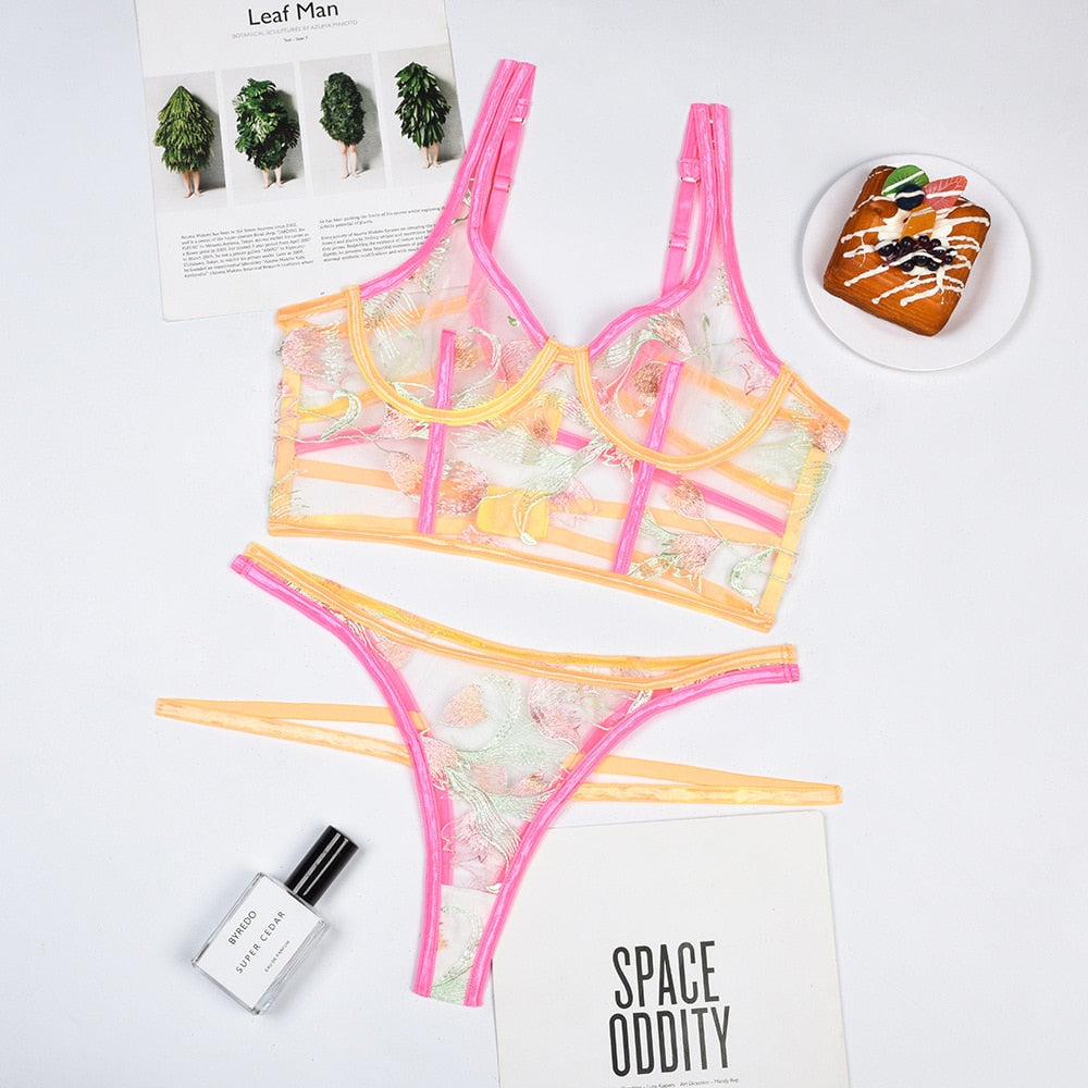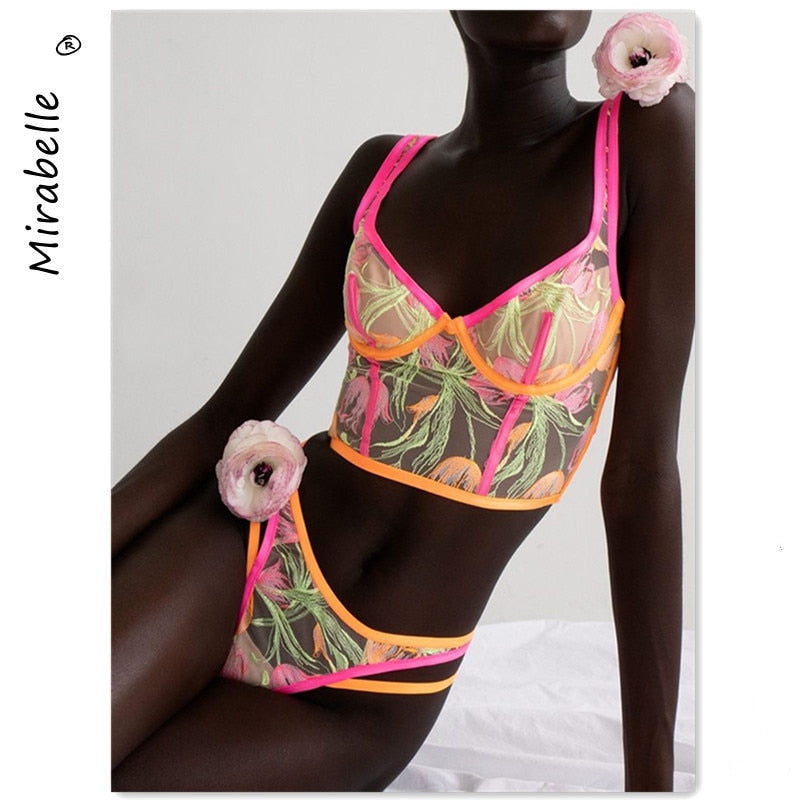 MIRABELLE Underwear Set Woman 2 Pieces Patchwork Bralette Sensual Lingerie Top Women Lace Sexy Corset Embroidery Erotic Sets