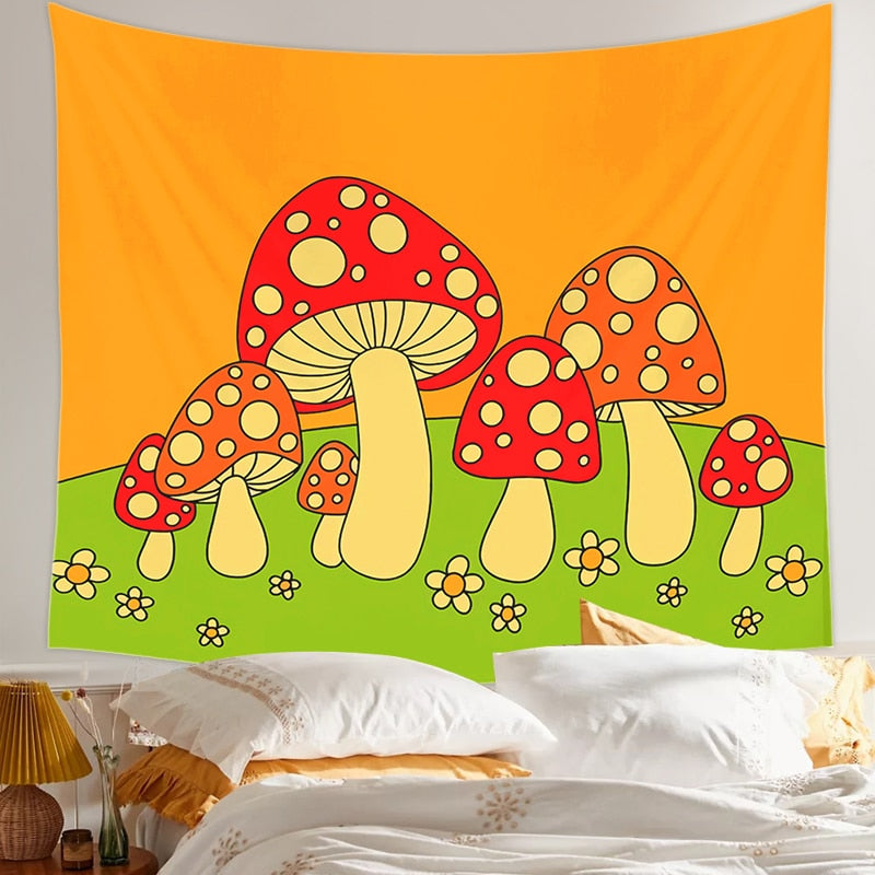 Mushroom Tapestry Wall Decor Girls Dorm Room Wall Hanging Aesthetic Room Let's Take a Try Psychedelic Wall Decoration INS Print