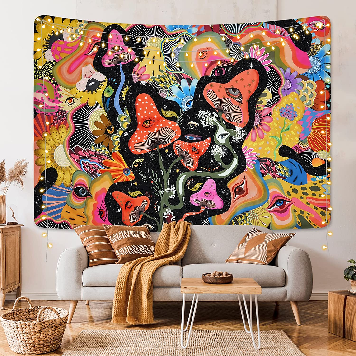 Mushroom Tapestry Wall Hanging Psychedelic Eyes Tapestries Trippy Tapestry Colorful Flowers Hippie Carpets for Room Starry