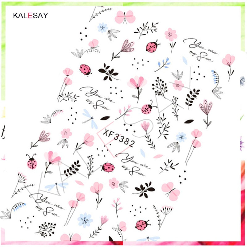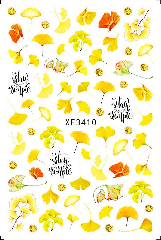Nail Art Stickers Green Nature Manicure Nails Design Decal Back Glue Decoration Plant Leaf Nail Art Decals Sticker Decor