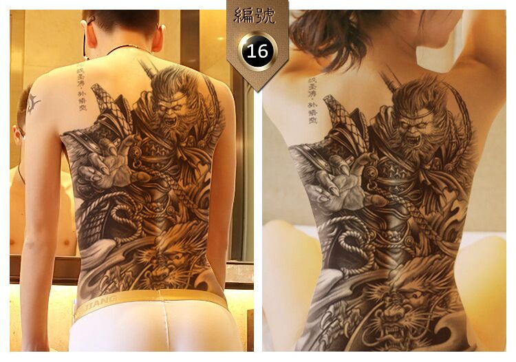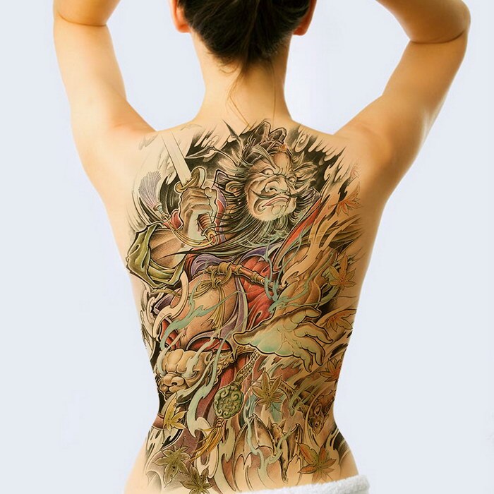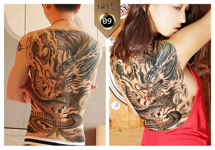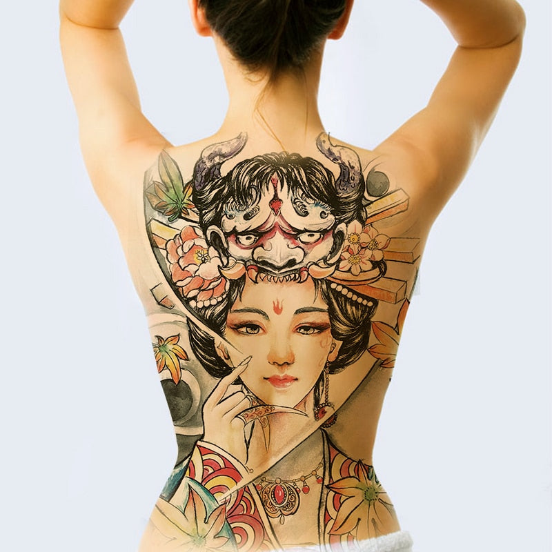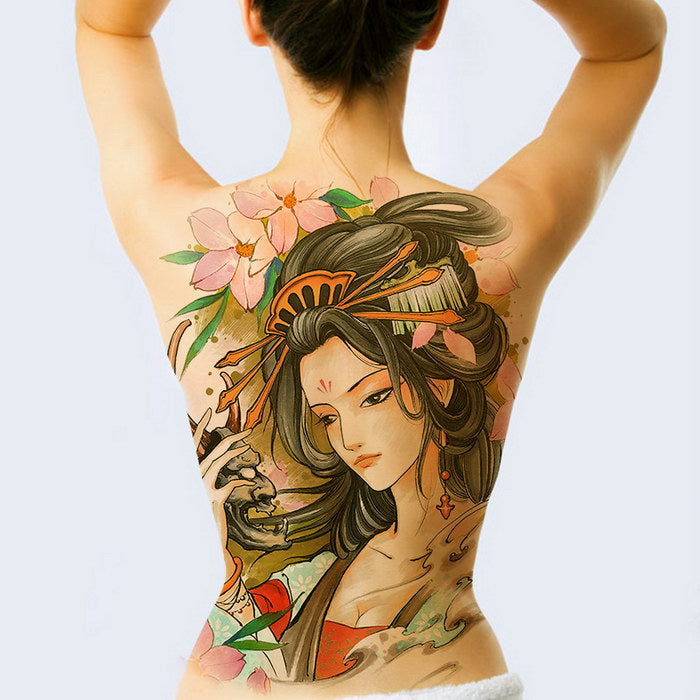 New 48*35cm Large geisha Tattoos Men Women Waterproof Big Temporary Tattoo Stickers Full Back Body art Fake Tattoo dragon skull