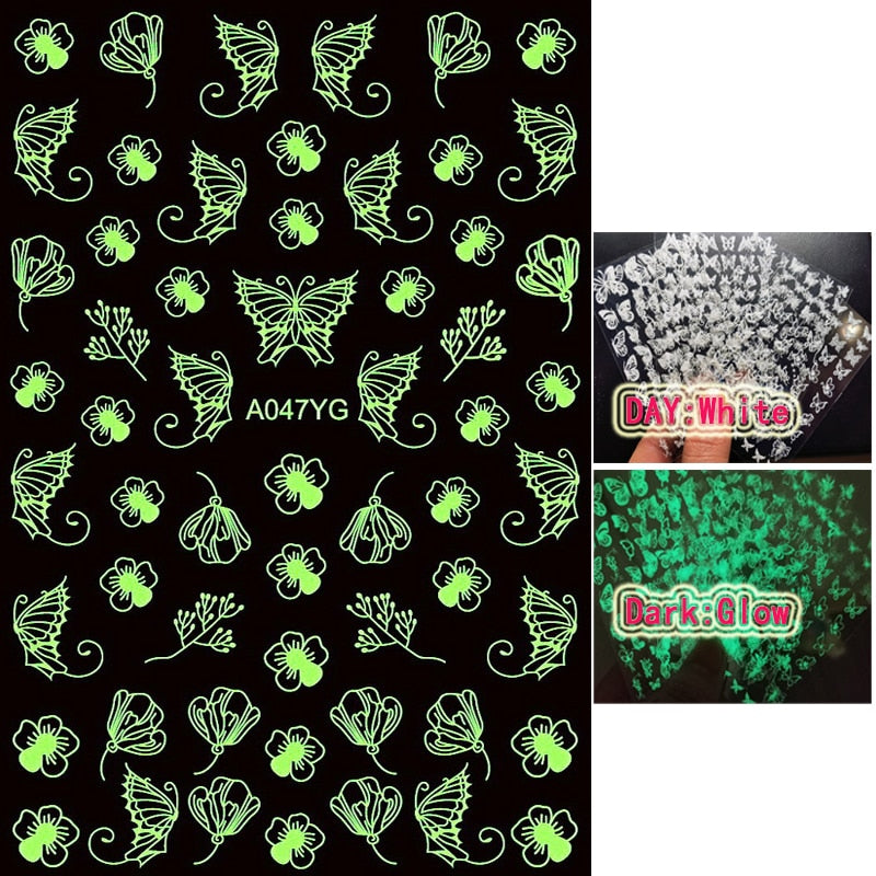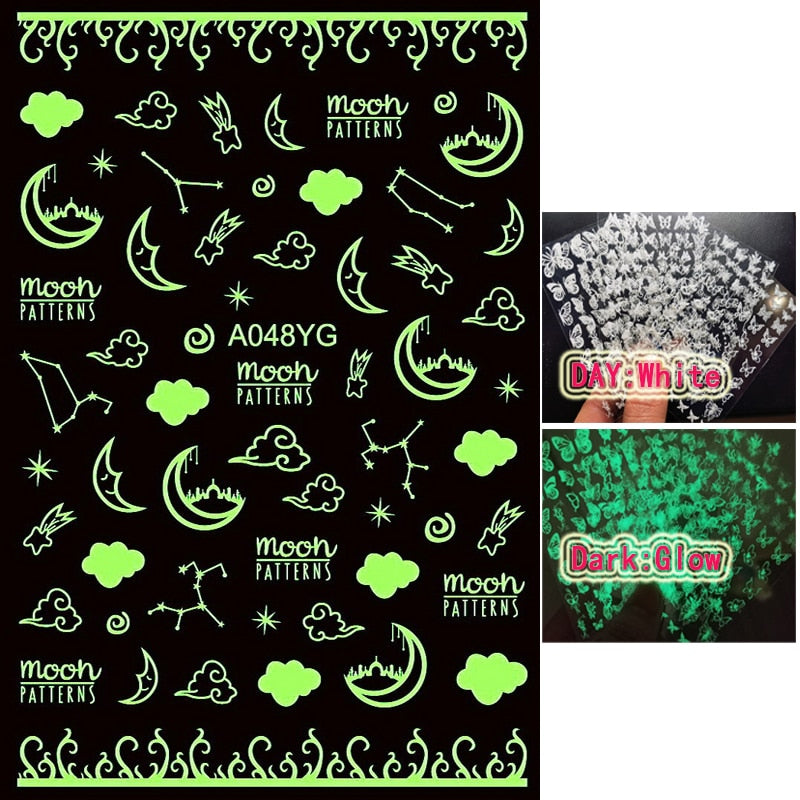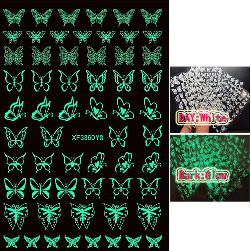 New Arrive Nail Art Sticker Decal Decoration Glow In Dark Butterfly Nail Stickes Back Glue Moon Manicure Sticker on Nails Design