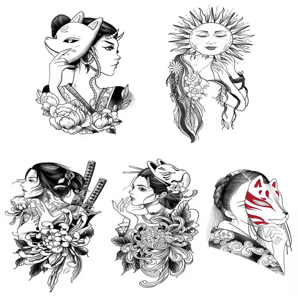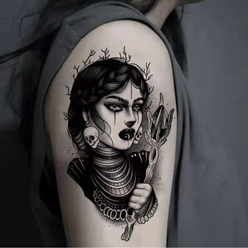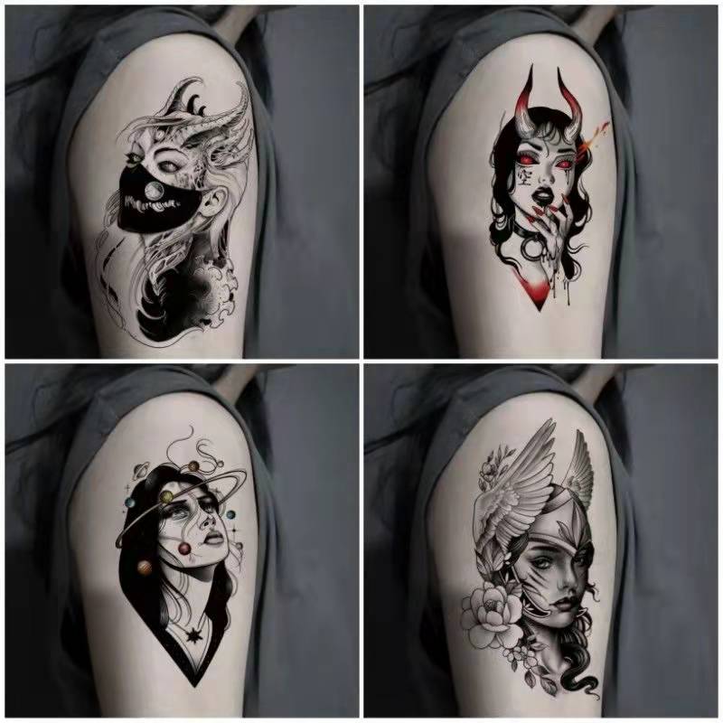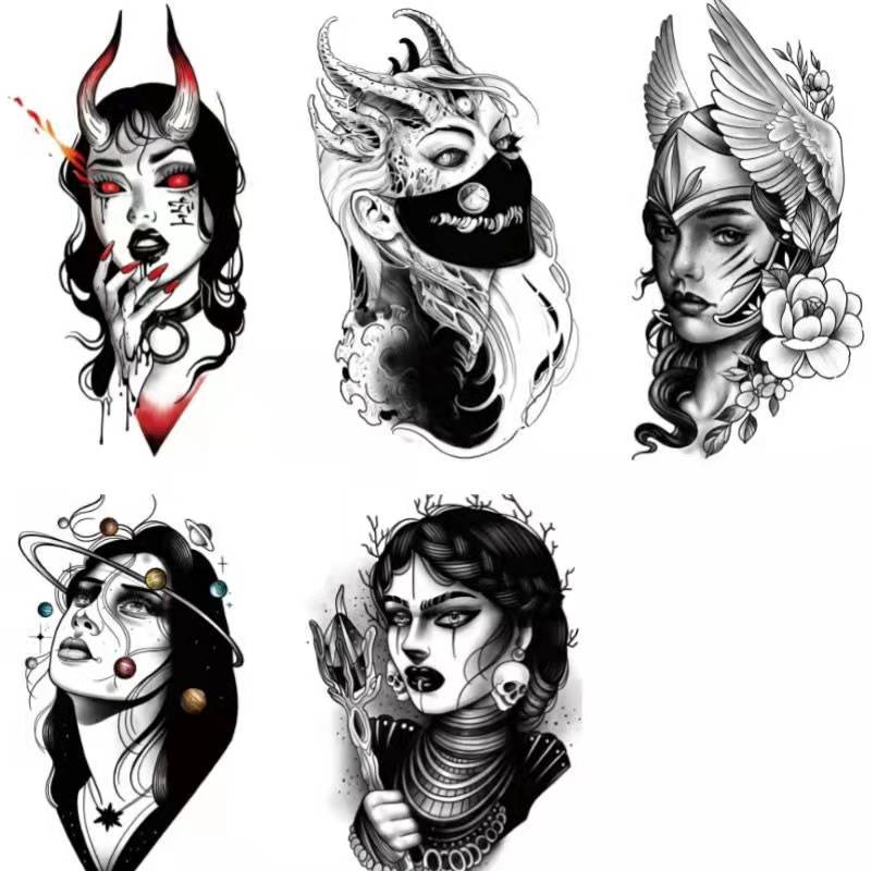 New Dark Beauty Witch Temporary Tattoo Stickers Set Female Flower Arm Waterproof Durable Black Personality Cool Art Fake Tattoo
