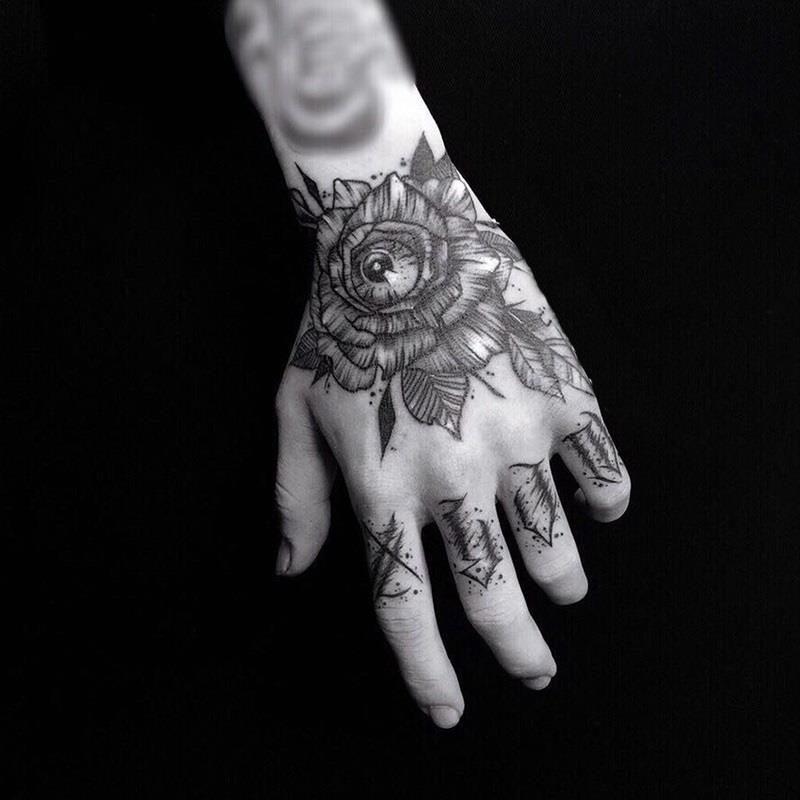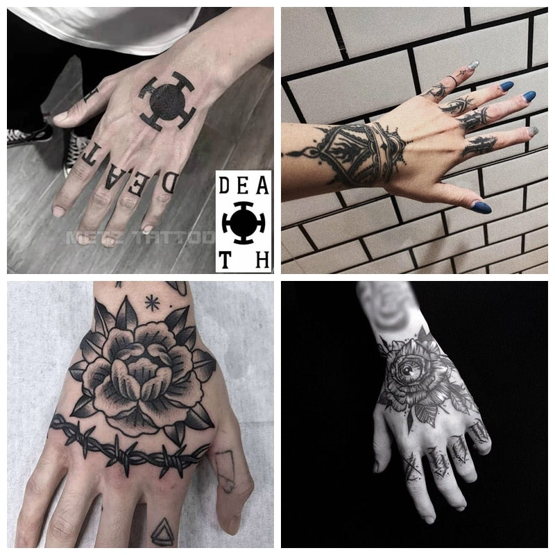New Dark Flower Temporary Tattoo on Hand Sticker for Men Women Waterproof Durable Tattoo Cool Art Hand Back Finger Fake Tattoo