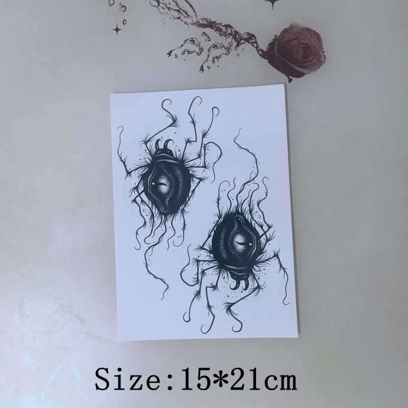 New Dark Spider Pattern Tattoo Sticker Men Waterproof Lasting Alternative Art Fake Tattoo Reptile Hand Back Neck Tattoo Sticker