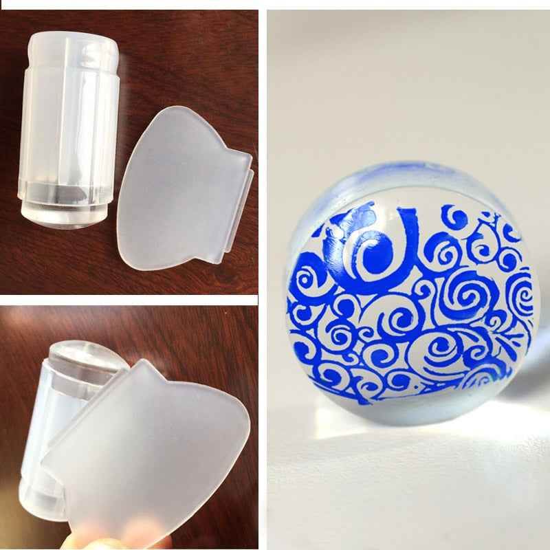 New Design Pure Clear Jelly Silicone Nail Art Stamper Scraper Transparent Nail Stamp Stamping Tools