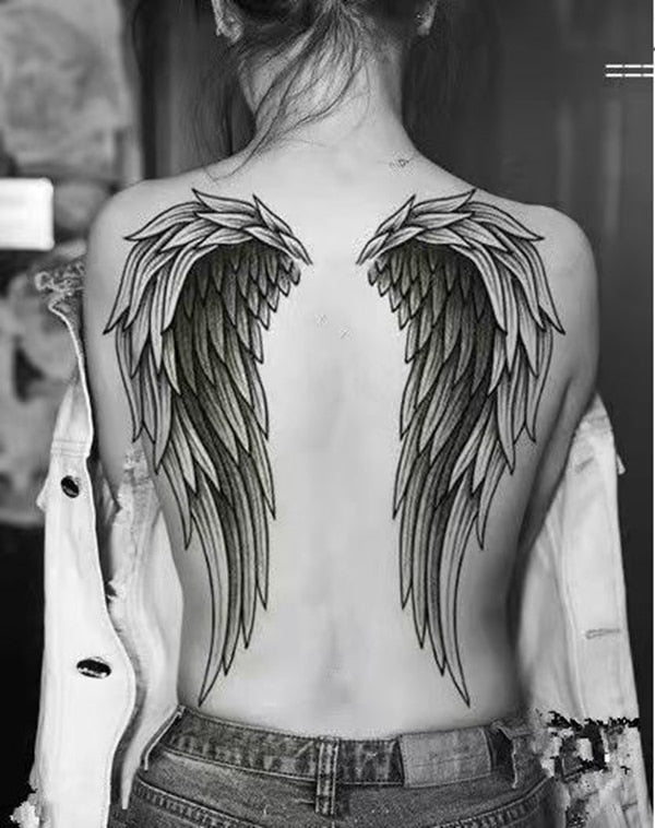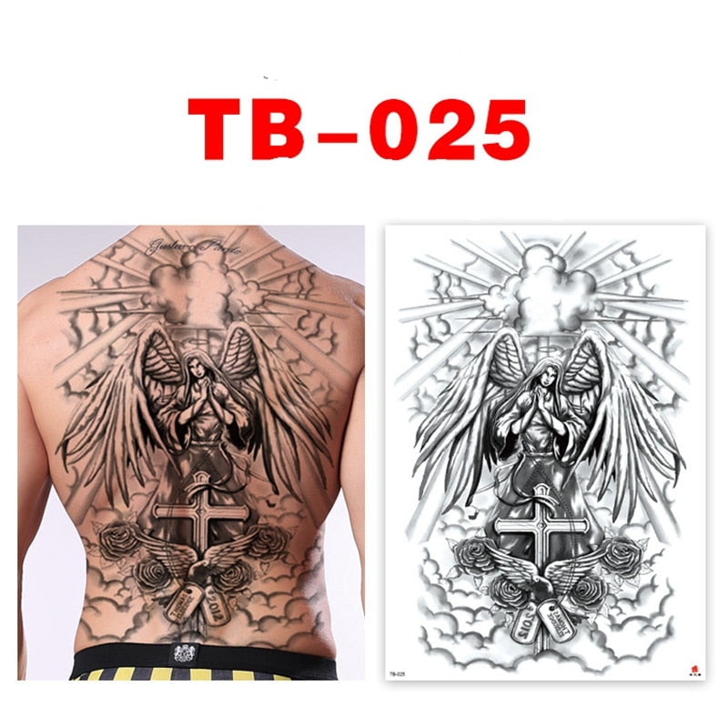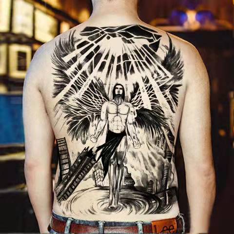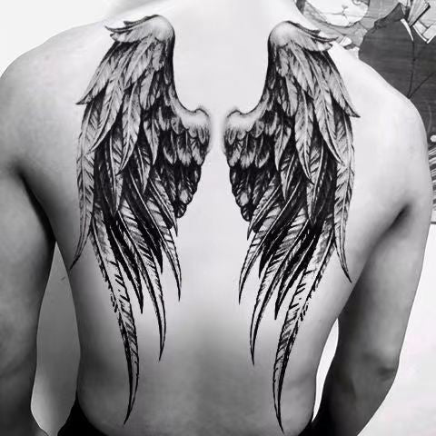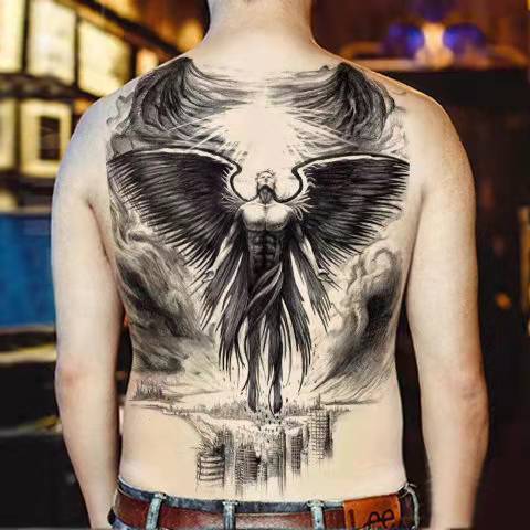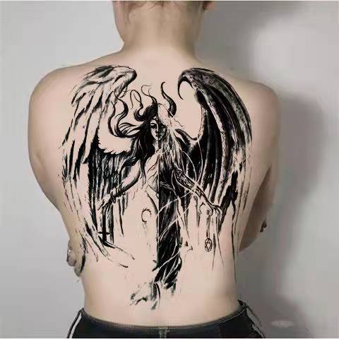 New Full Back Temporary Tattoo Stickers Men and Women Waterproof Personality Angel Devil Wings Art Fake Tattoo Black Tattoo Set