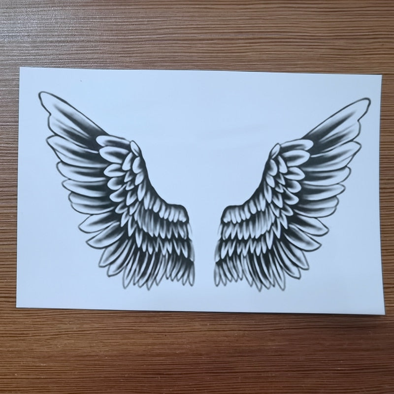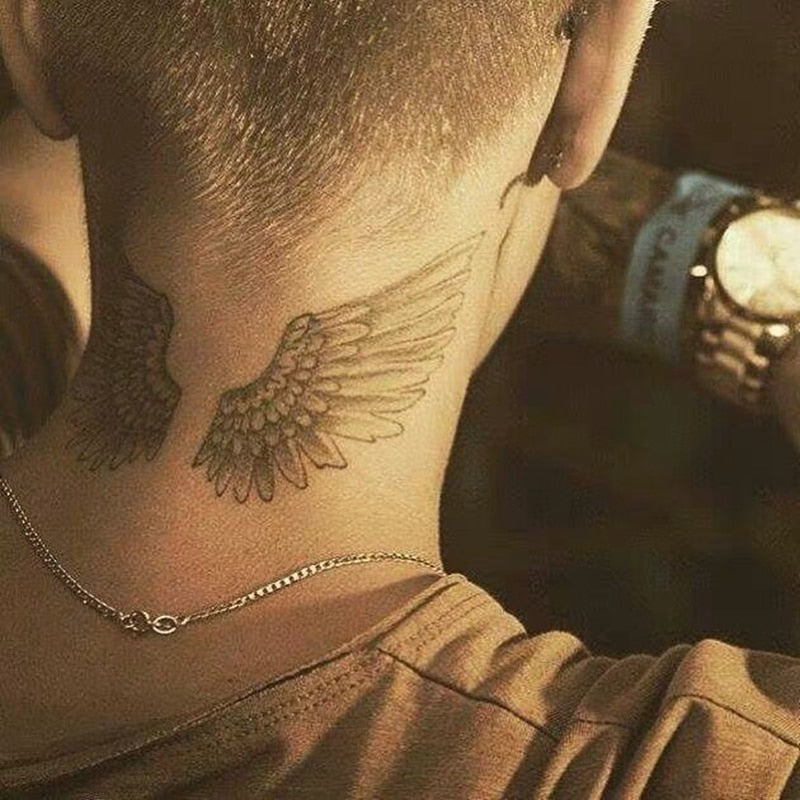 New Neck Wing Temporary Tattoo Sticker Men And Women Waterproof Black Lasting Fake Tattoo Demon Angel Body Art Tattoo Sticker