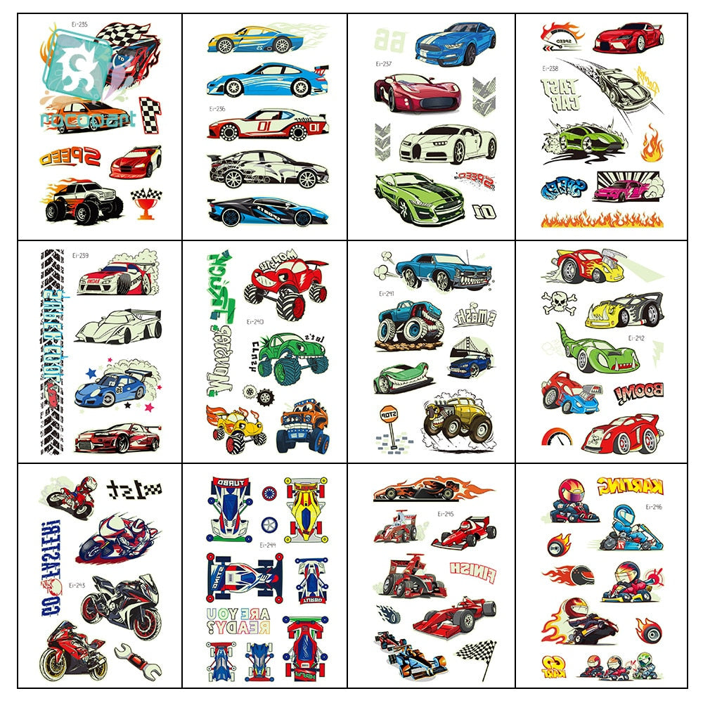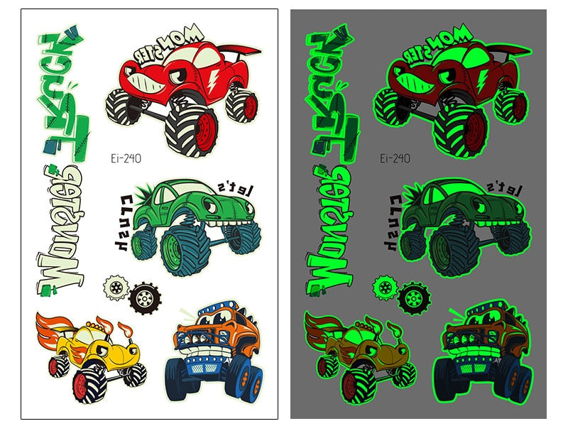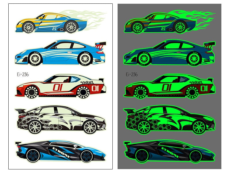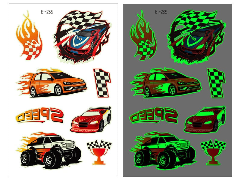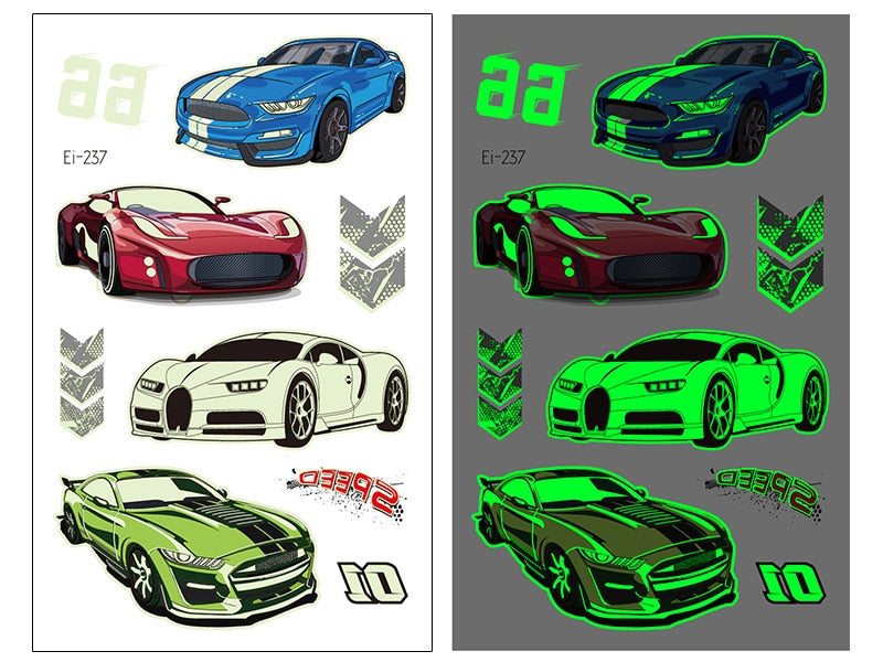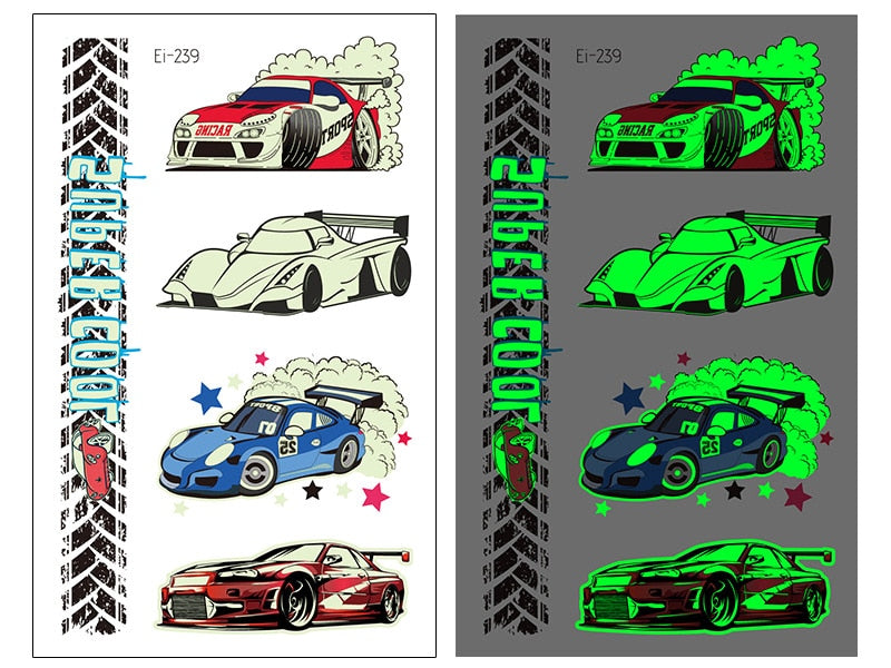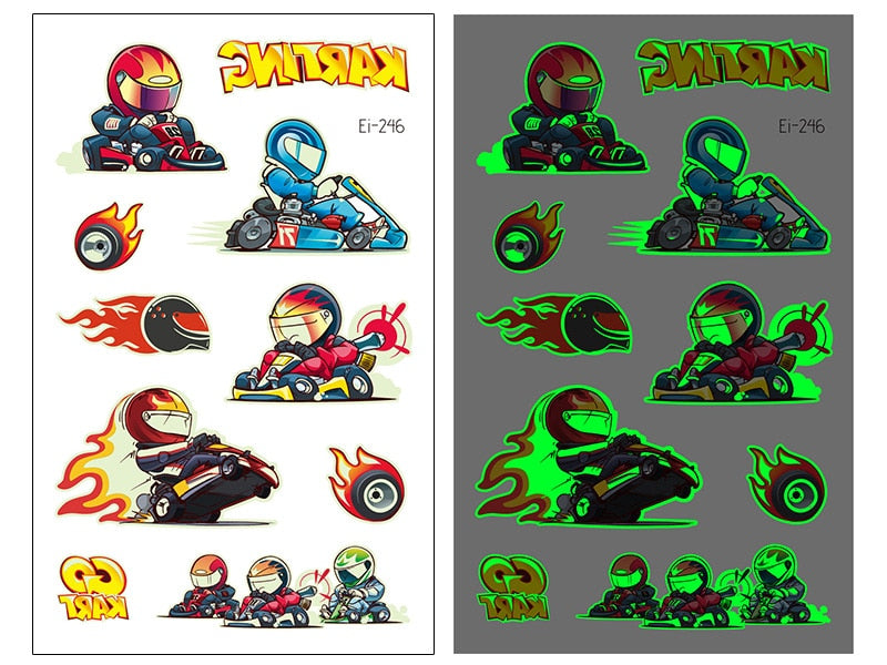 New Racing Waterproof Temporary Tatoo Sticker Children Cool Luminous Motorcycle Racing Fake Tattoo Night Glowing Tattoo Stickers