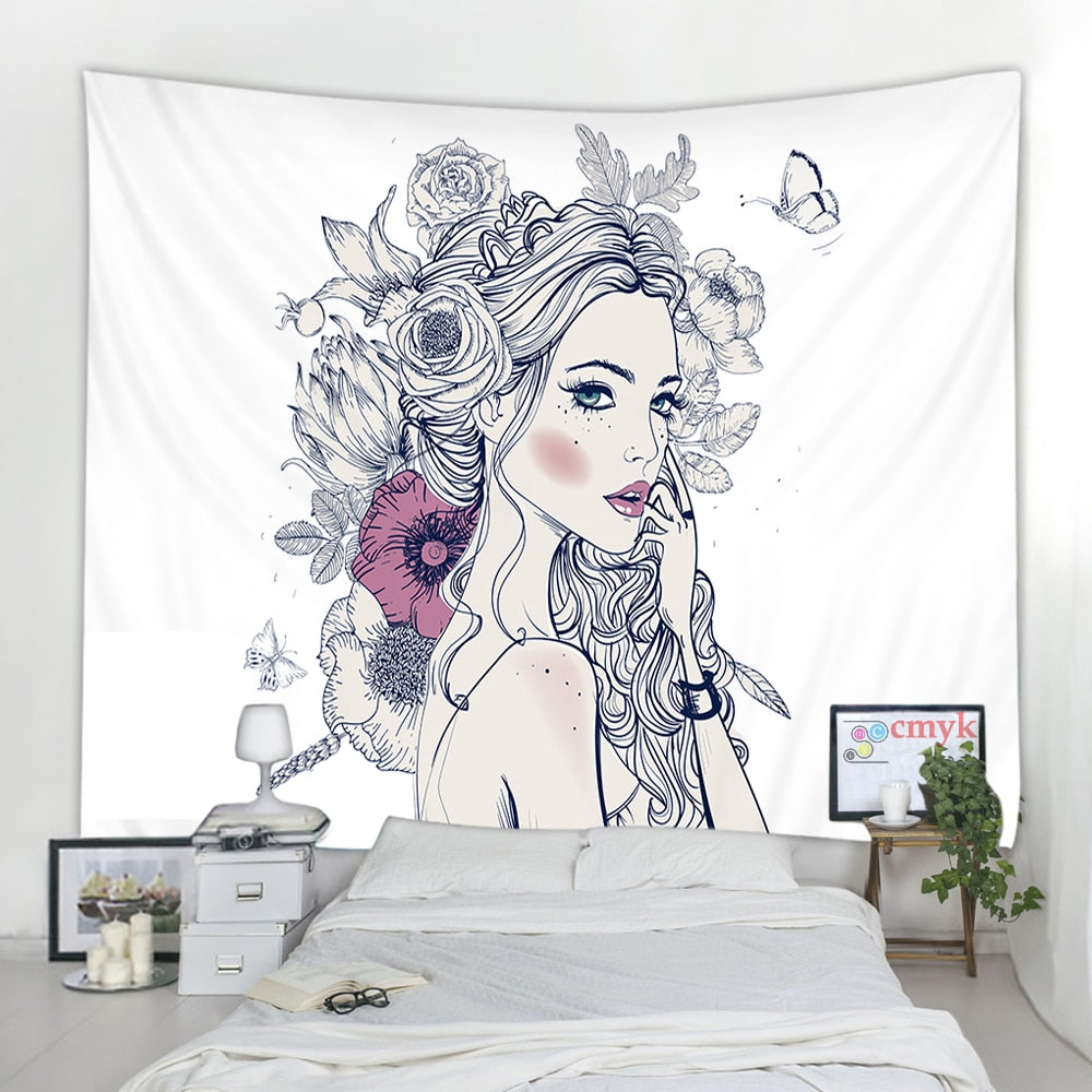 Nordic simple Tapestry Hippie Girl Wall hanging cloth Coffee bedroom Tapestry Mandala Fabric Boho Wall Cloth Tapestry