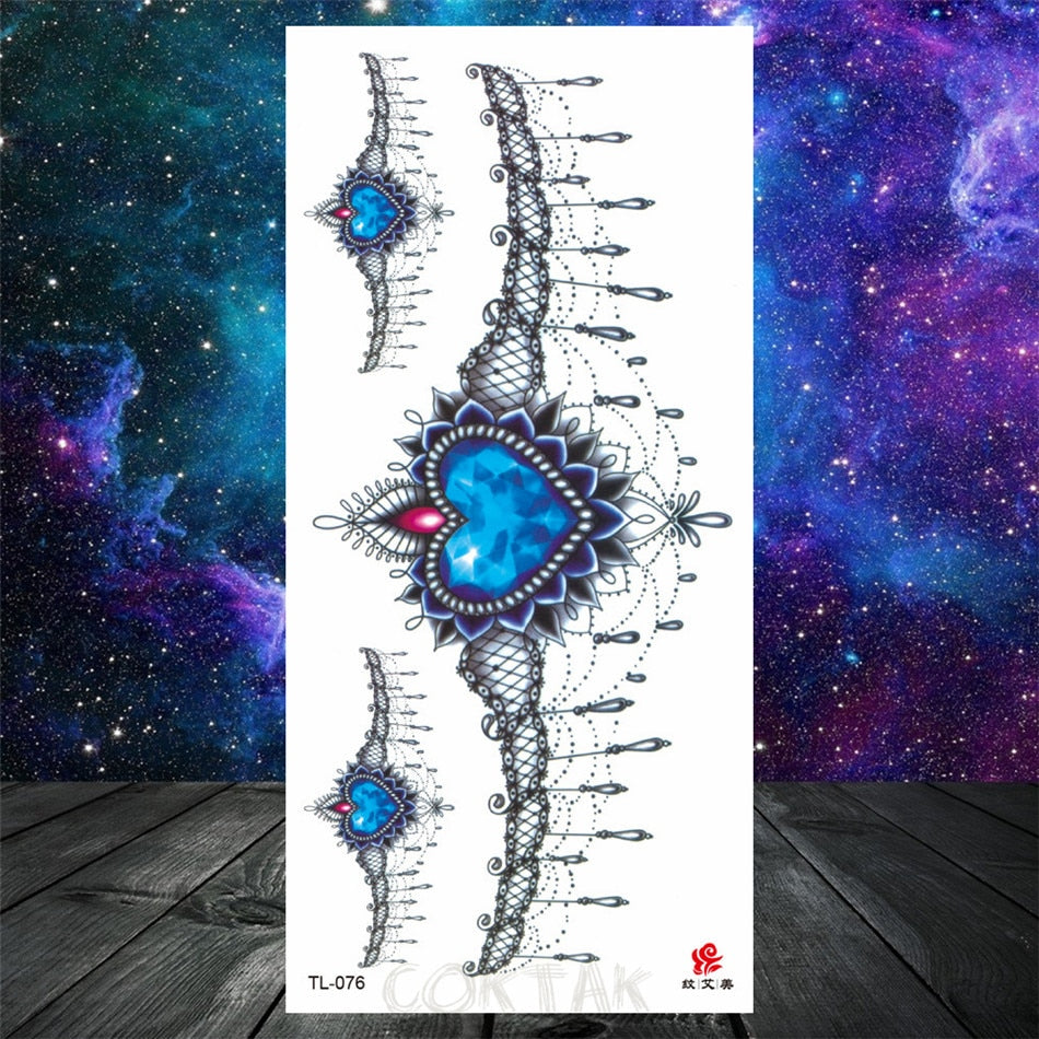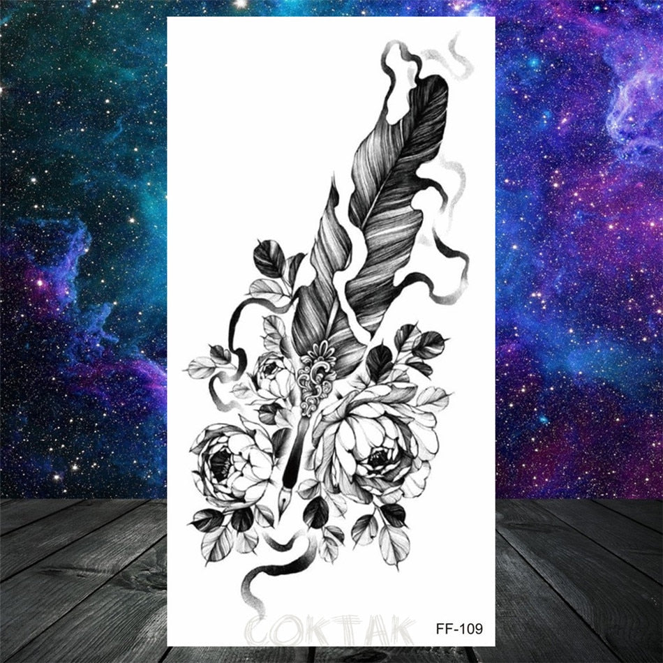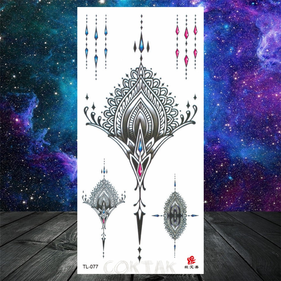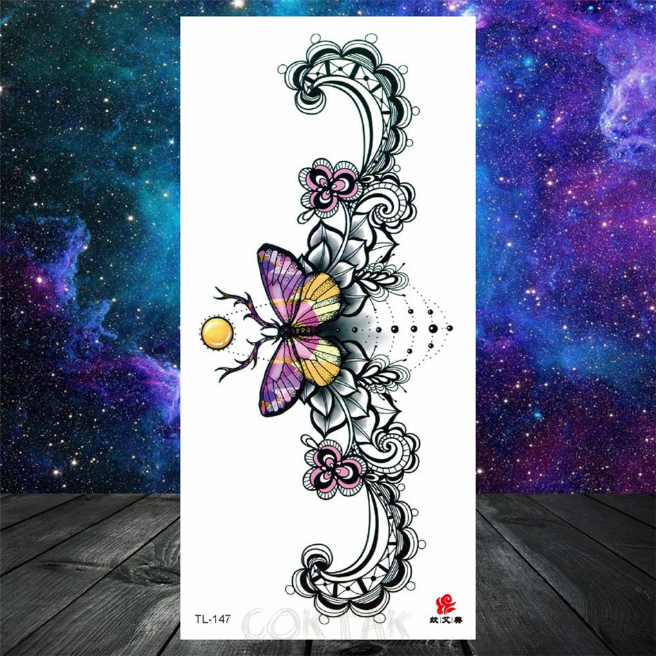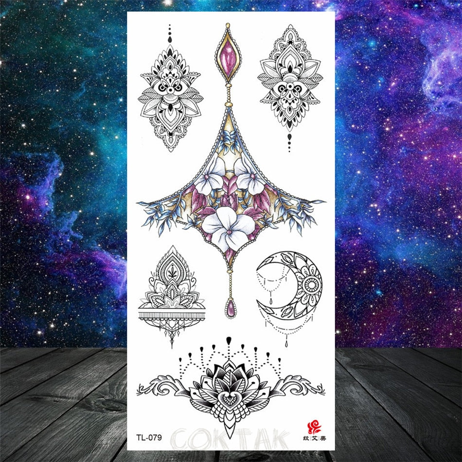 Owl Moth Jewelry Temporary Tattoo For Women Men Mandala Henna Flower Tattoo Mehndi Fake Pendants Geometric Tatoo Chest Back Lace