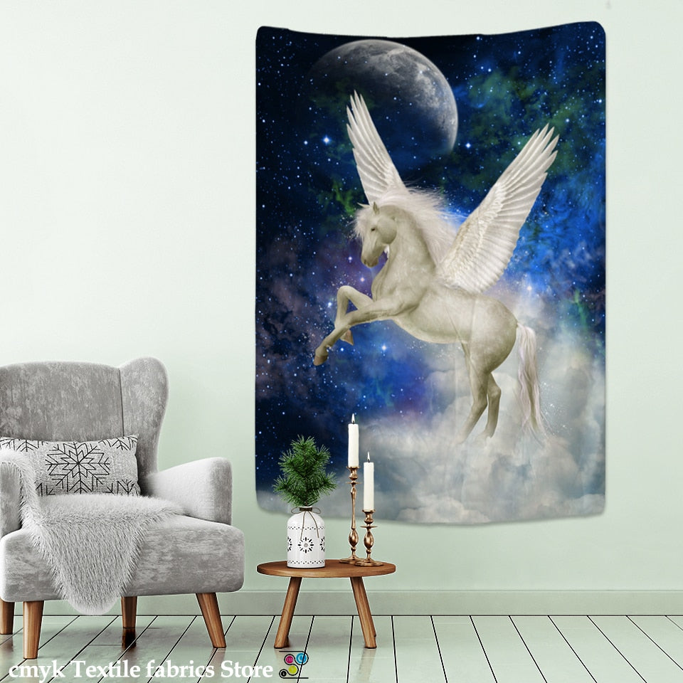 Pegasus Horse Tapestry Wall Hanging Starry Universe Psychedelic Wall Tapestry Bohemian Mandala Hippie Bedroom Tapestry