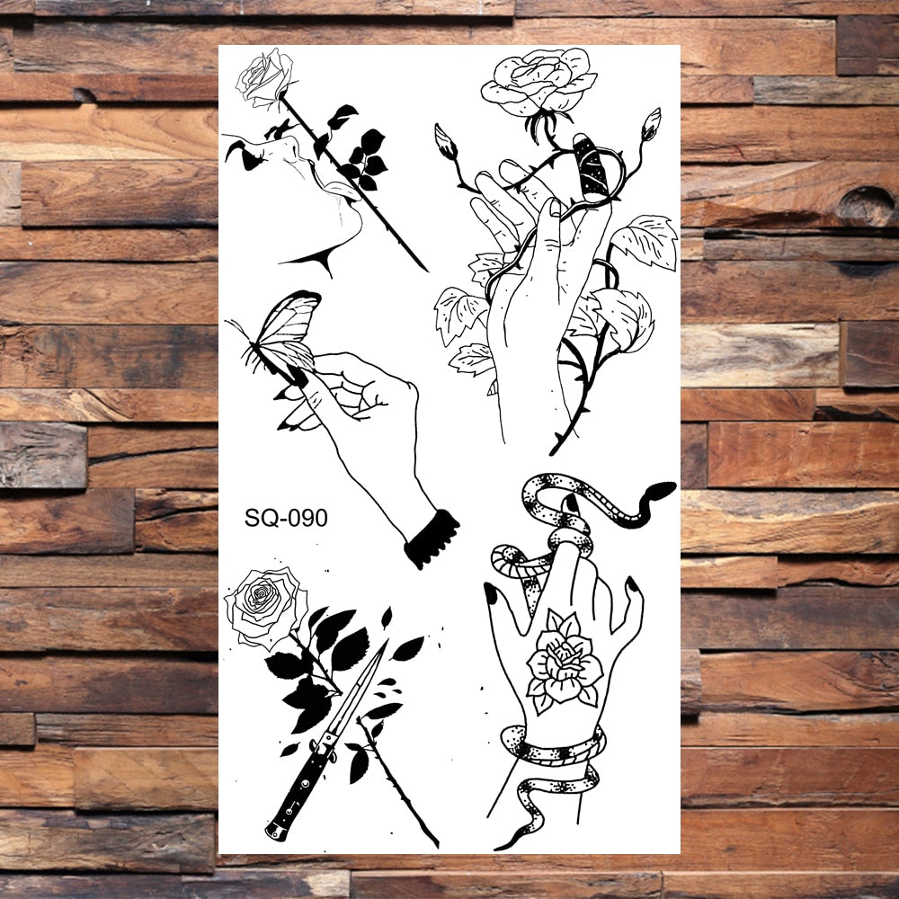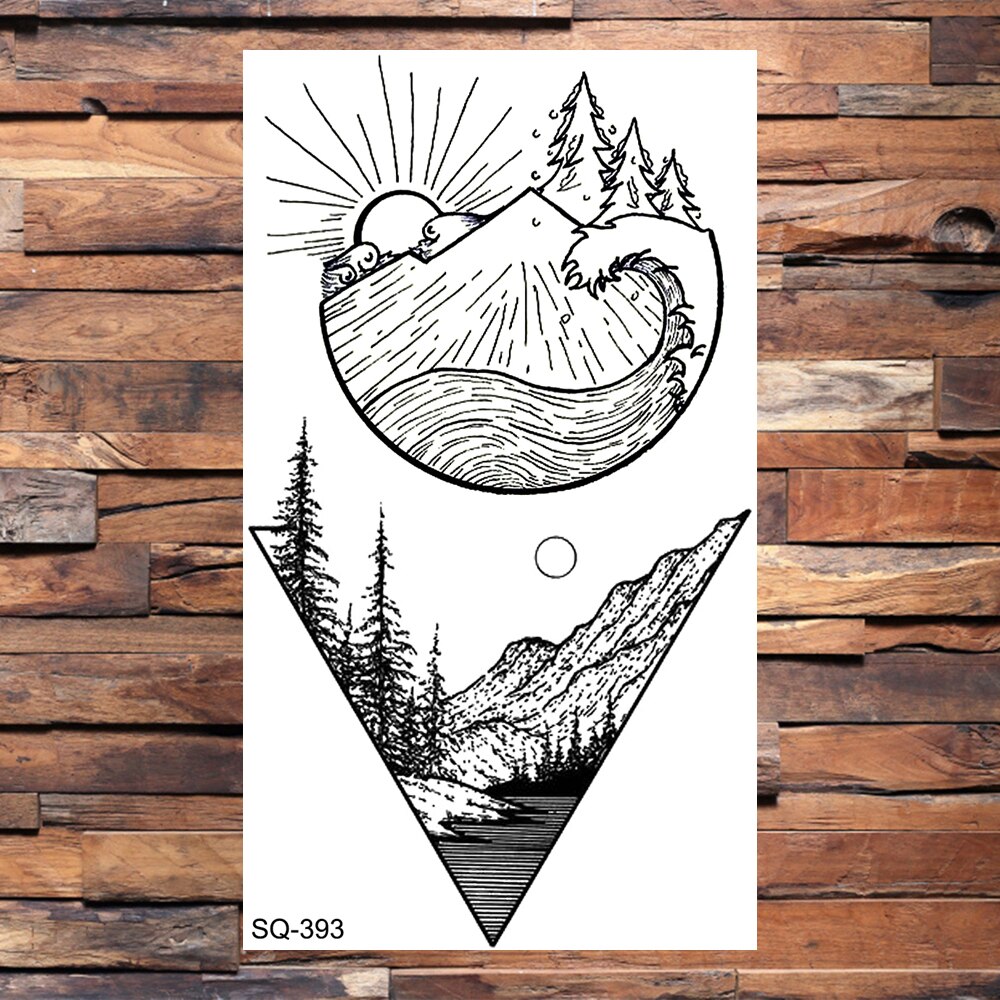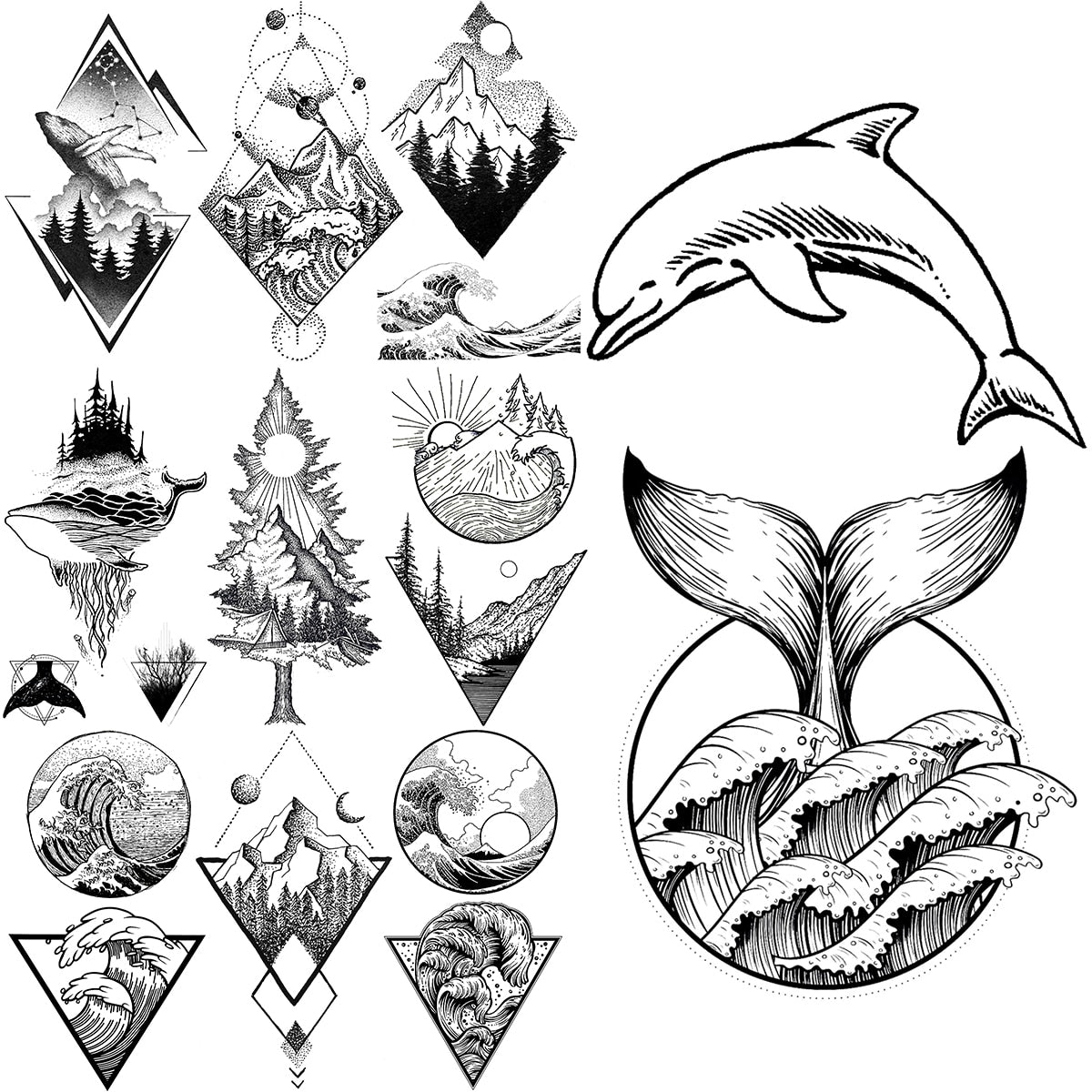 Pencil Sketch Dolphin Wave Temporary Tattoos For Women Adults Mountain Whale Pine Tree Fake Tattoo Sticker Body Arm Tatoos DIY