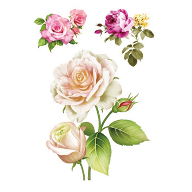 Pink Bloom Rose Water Transfer Fake Tattoo Stickers Women Body Chest Art Temporary Waist Bracelet Flash Tatoos Flower For Girl