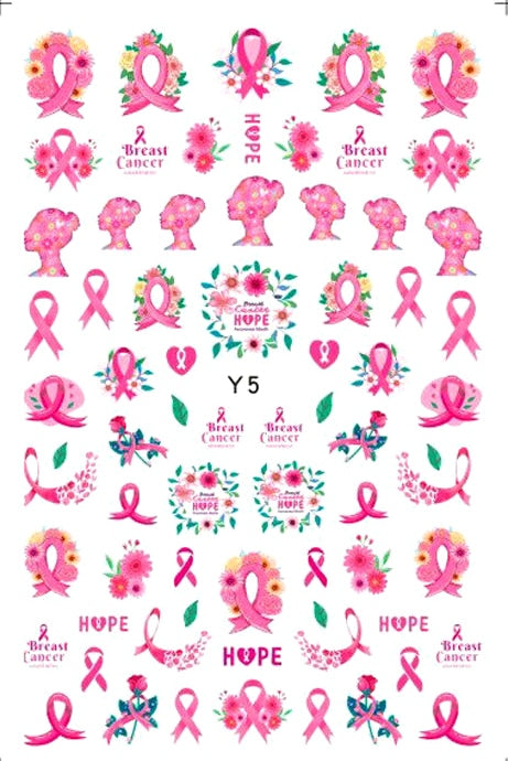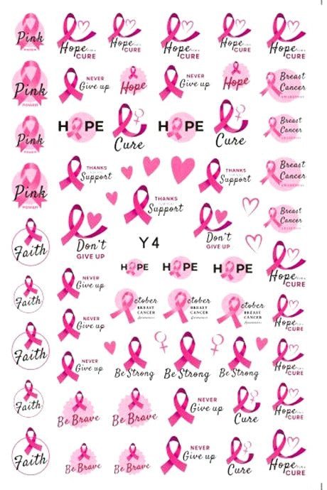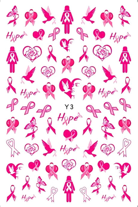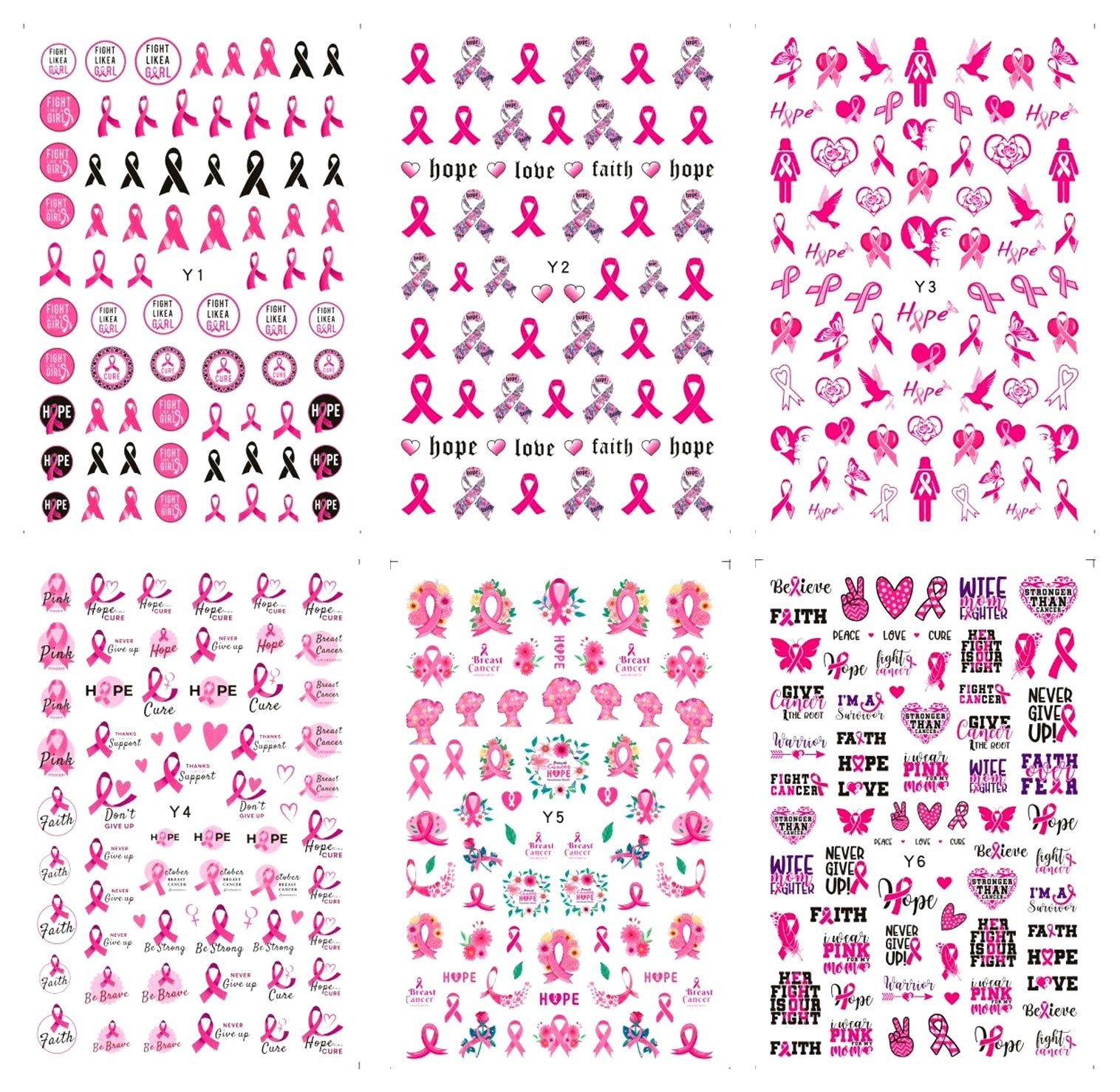 Pink Ribbon Health Nail Art Stickers 3D Decals Manicure Accessories Salon Women Gift Sticker Decal Heart Star Letter
