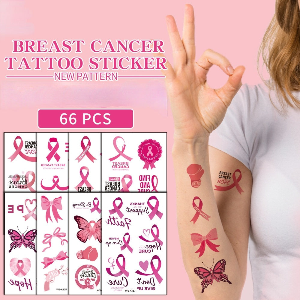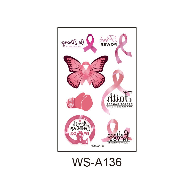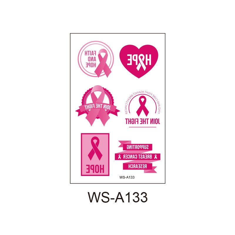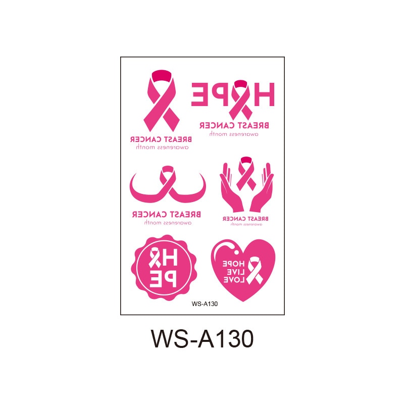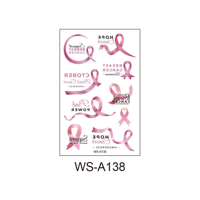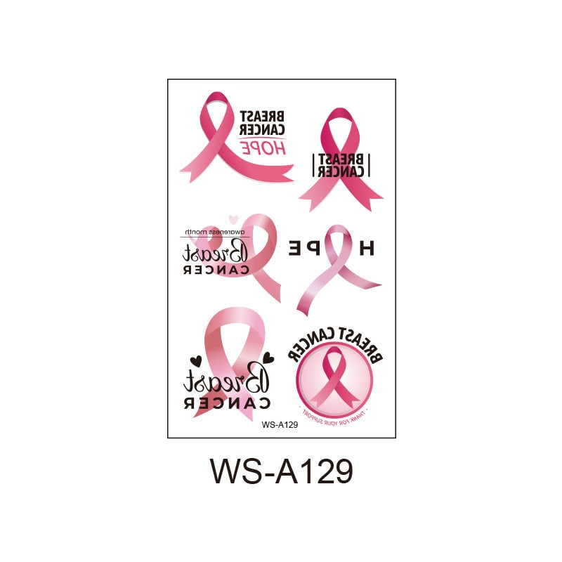 Pink Ribbon Tattoo Sticker Waterproof Sweat Promotional Event Disposable Tattoo Sticker Caring Day Tattoo Sticker