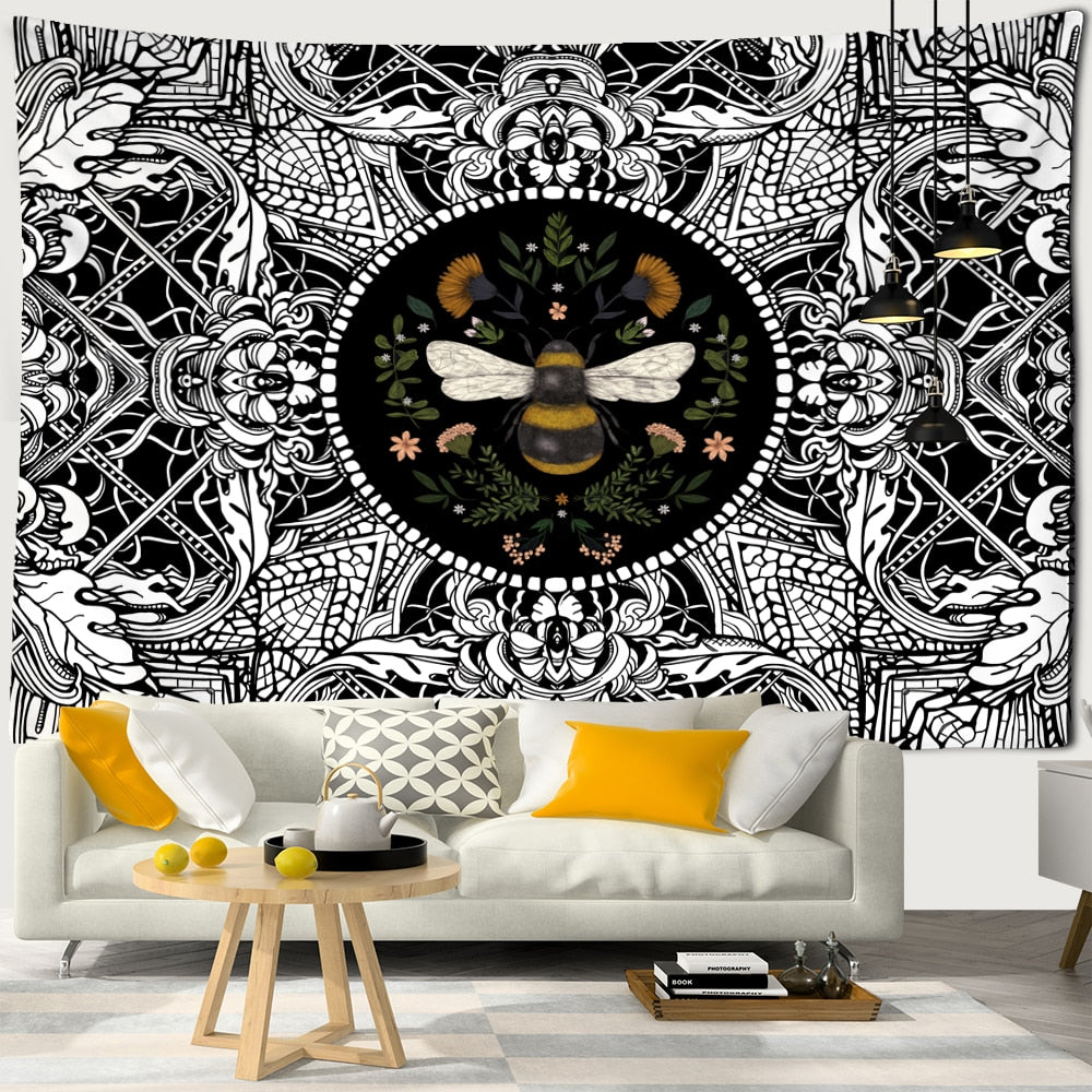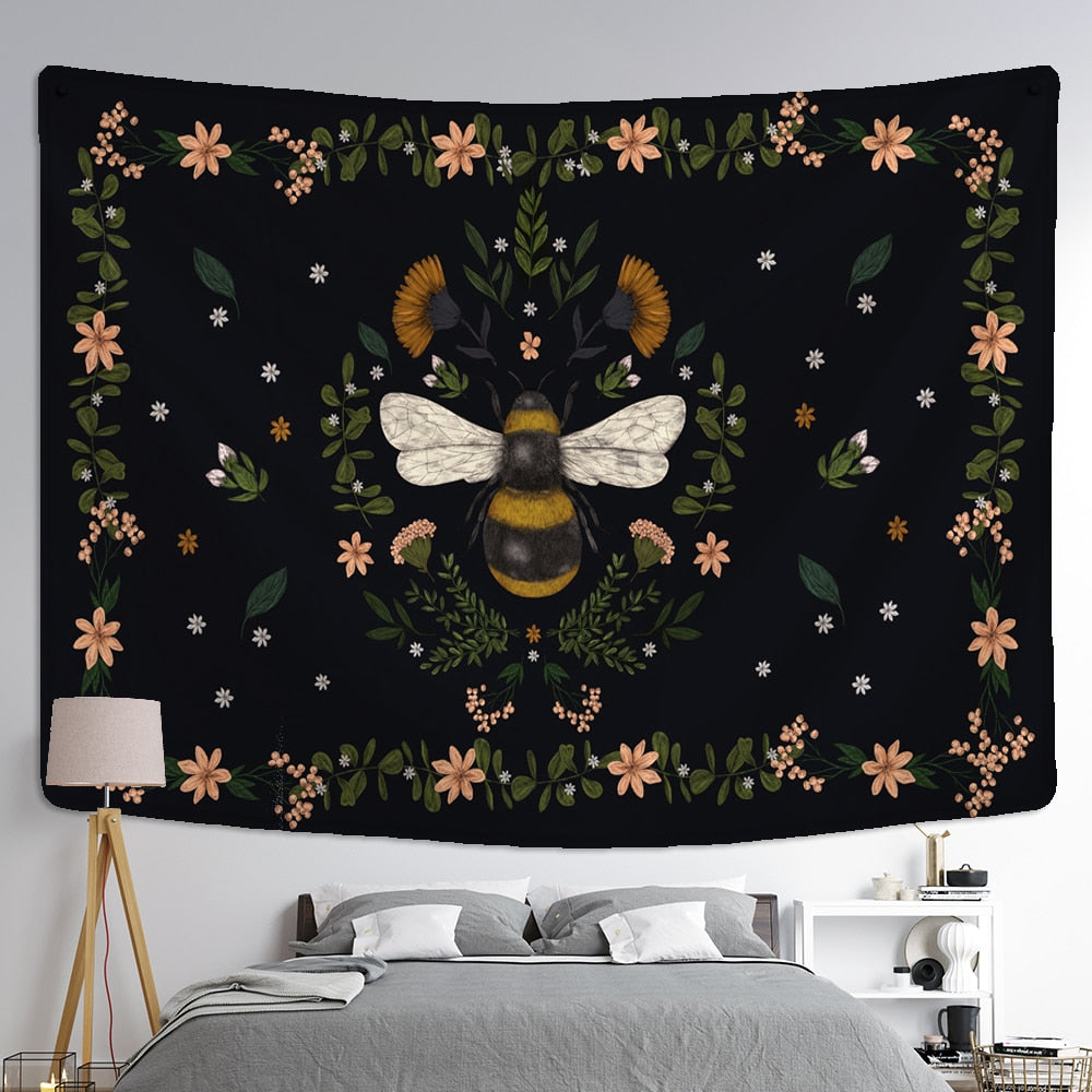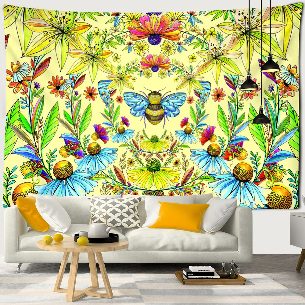 Plants Honeybee Tapestry Wall Hanging Bohemian Beach Mat Polyester Blanket Yoga Mat Home Bedroom Art Decor Custom Psychedelic