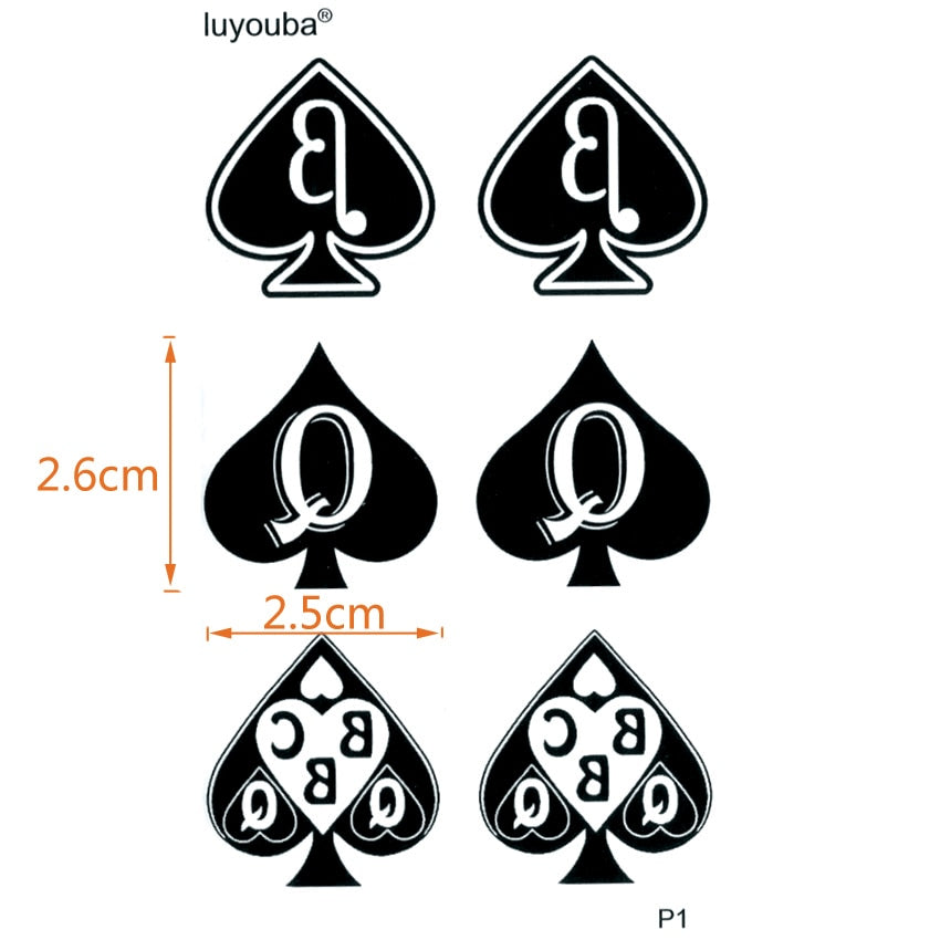 Poker Spades Waterproof Temporary Tattoos Women Fake Tattoo Body Stickers Tatoo Men Festival Tattoo Tatuajes Faux Tatouage