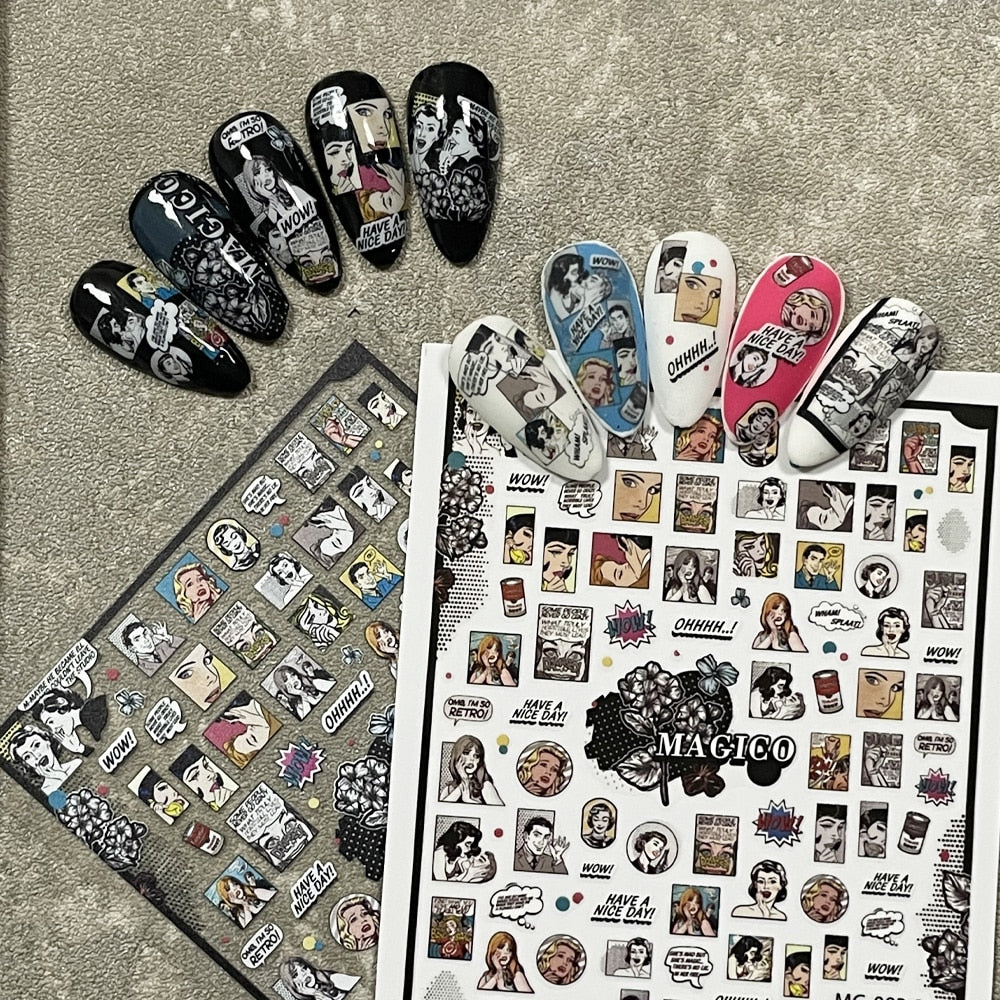 Pop Art Nail Sticker Cartoon Images Design 3D Engraved Nail Stickers Nail Art Decorations Nail Decals Design