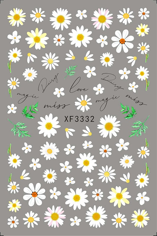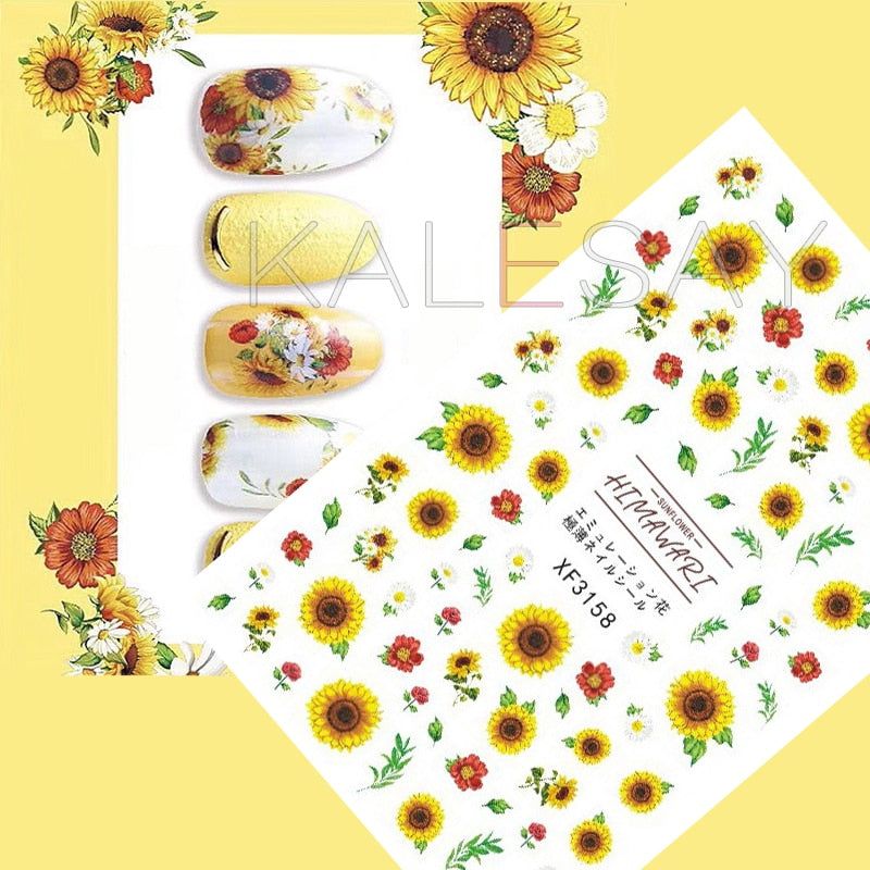 Popular Daisy Nail Sticker for Design Decoration Sunflower Nail Art Decals Adhesive Himawari Sticker for Nail Manicure Design