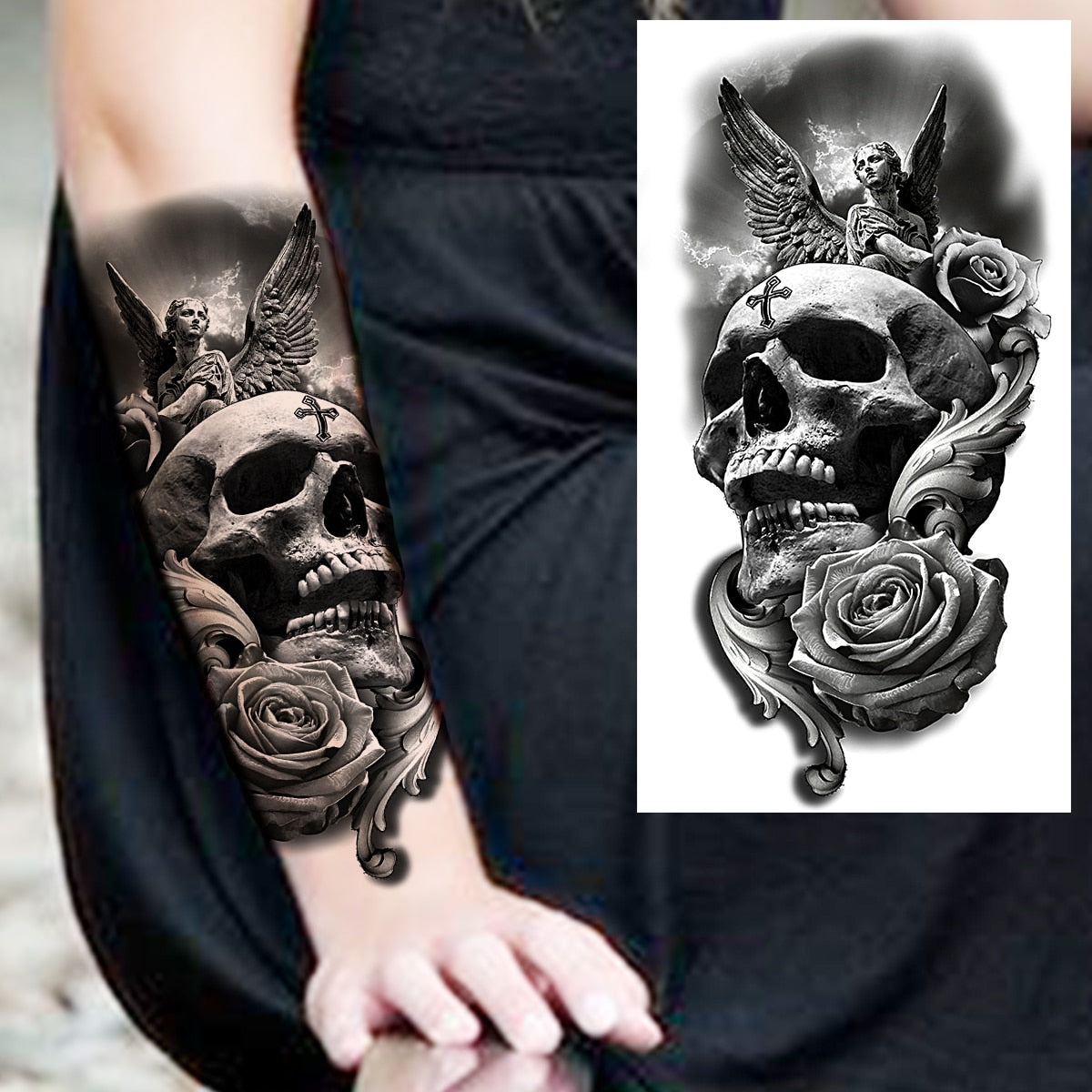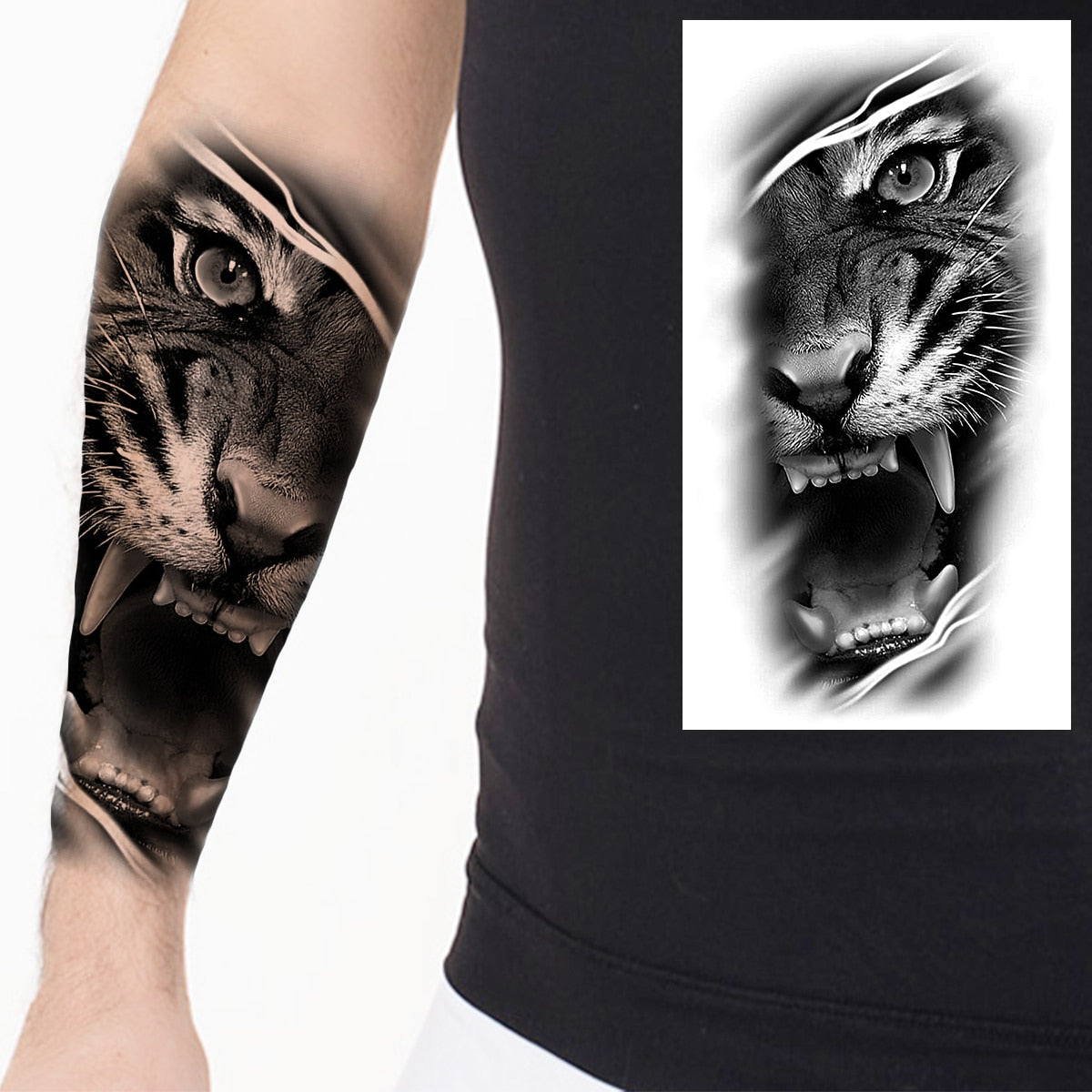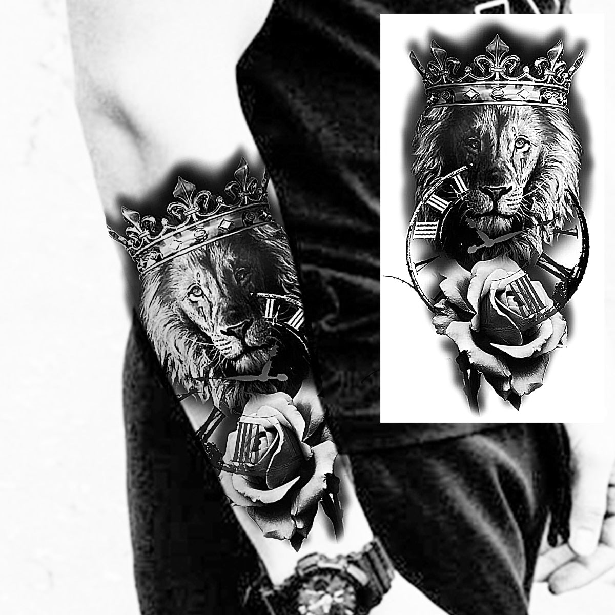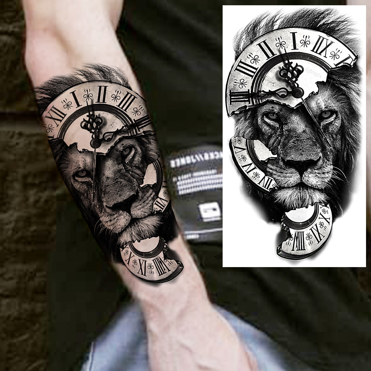 Praying Lion Cross Temporary Tattoos For Men Women Clown Wolf Tiger Flower Compass Fake Tattoo Sticker Forearm Waterproof Tatoos