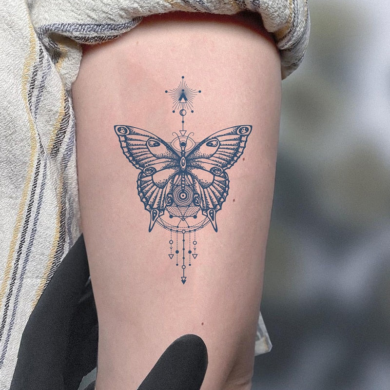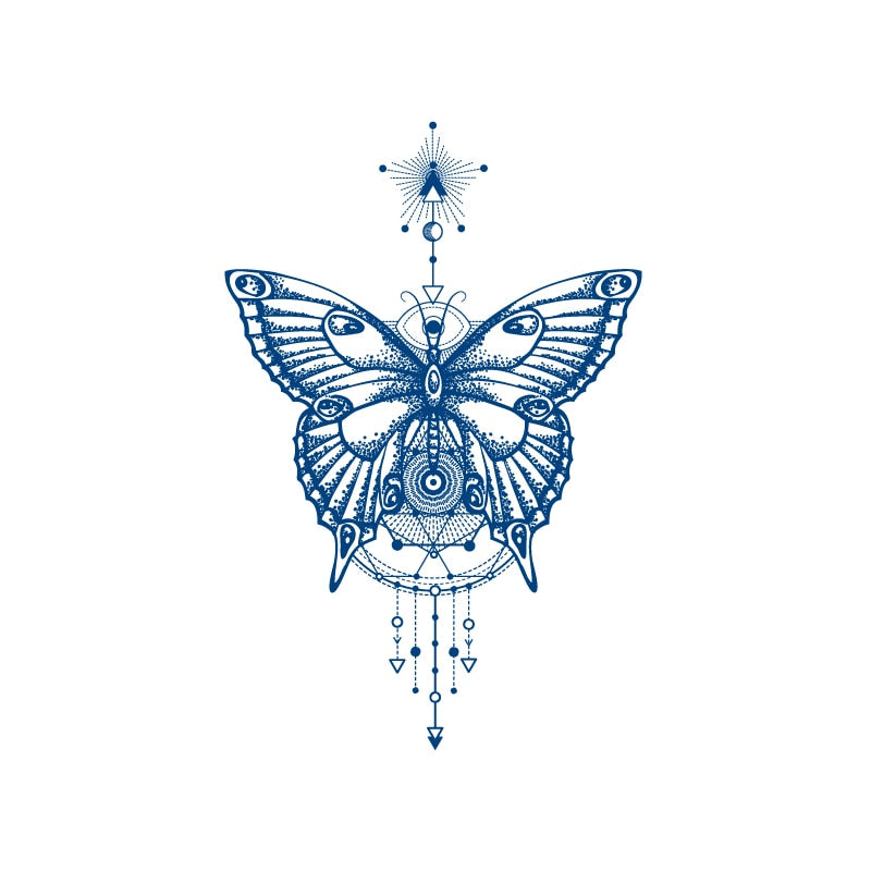 Premium Semi-Permanent Tattoos for Men Women,Dark Blue Butterfly Temporary Tattoo Lifelike Waterproof and Long-Lasting 1-2 Weeks