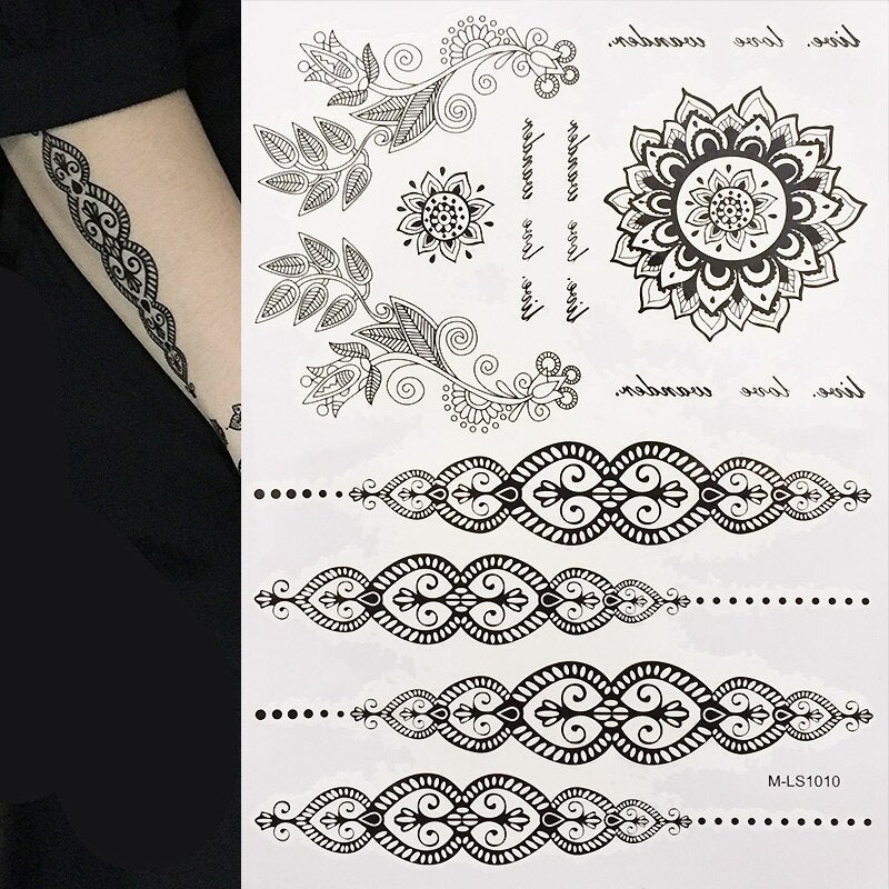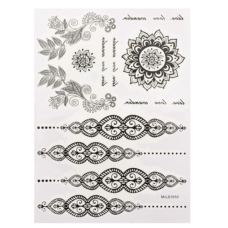Pretty Temporary Black Henna Tattoos Waterproof Women Body Tattoo Stickers