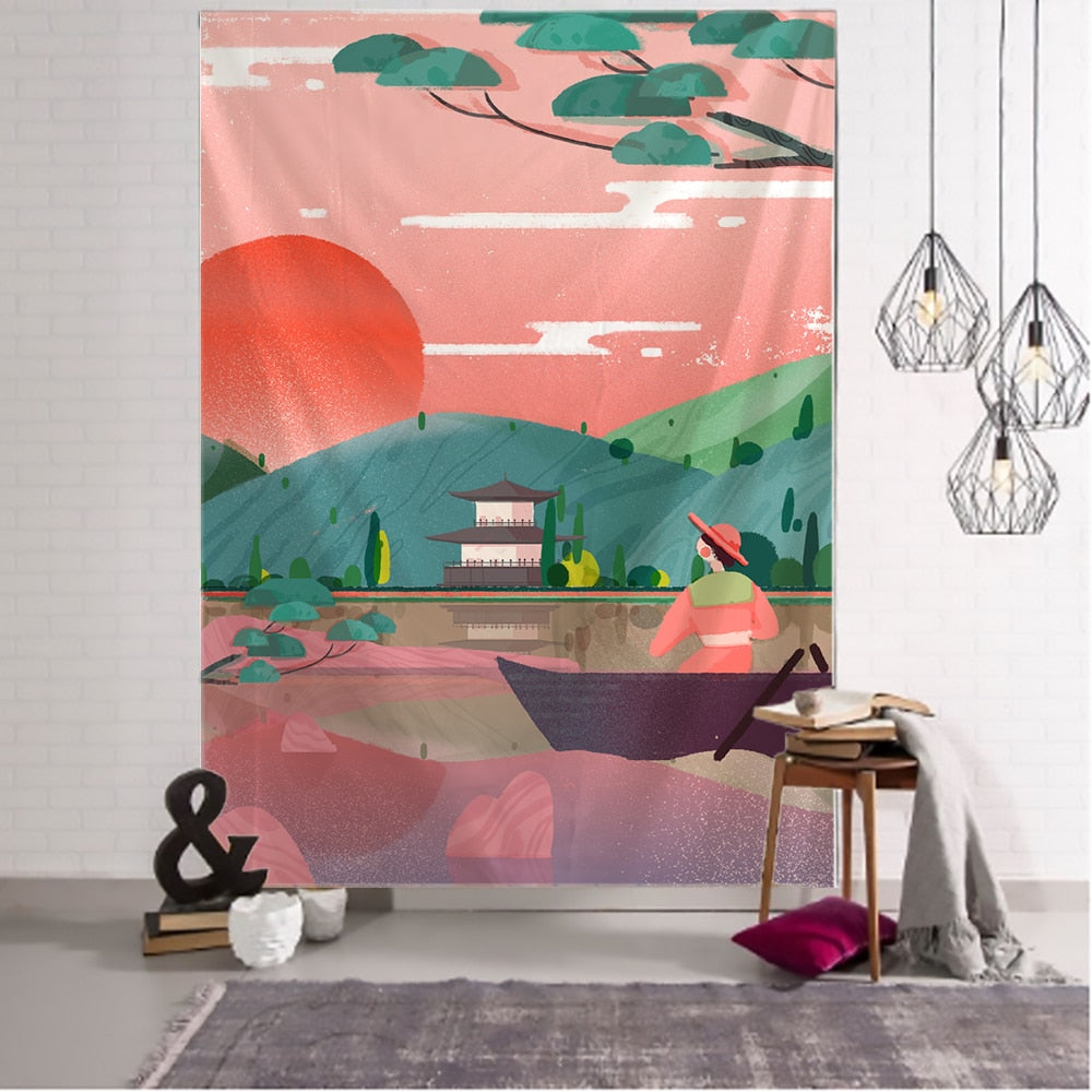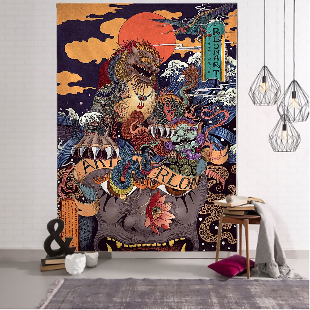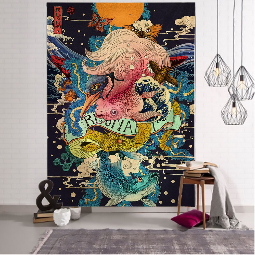 Print Blanket Kanagawa Wave Tapestry Wall Hanging Bohemian Bed Hippie Japanese Illustration Kawaii Bedroom Home Decor