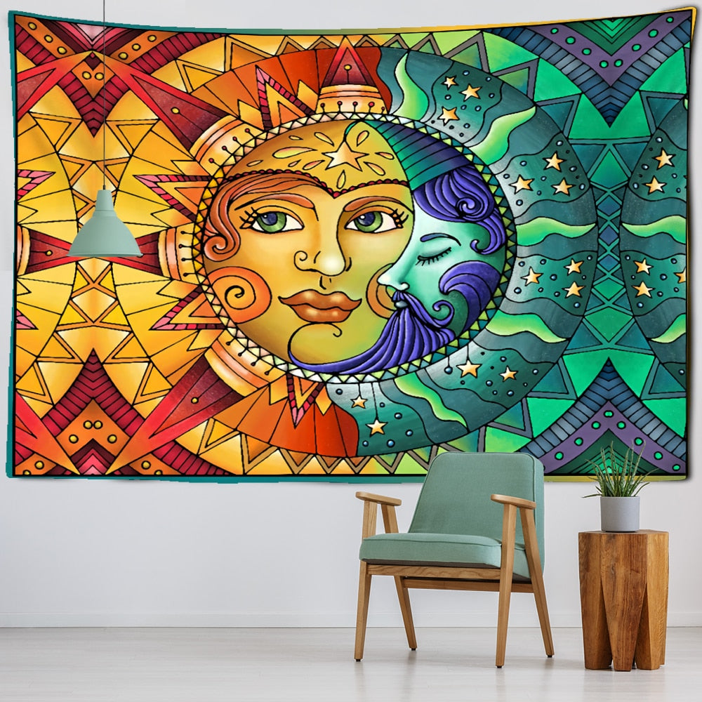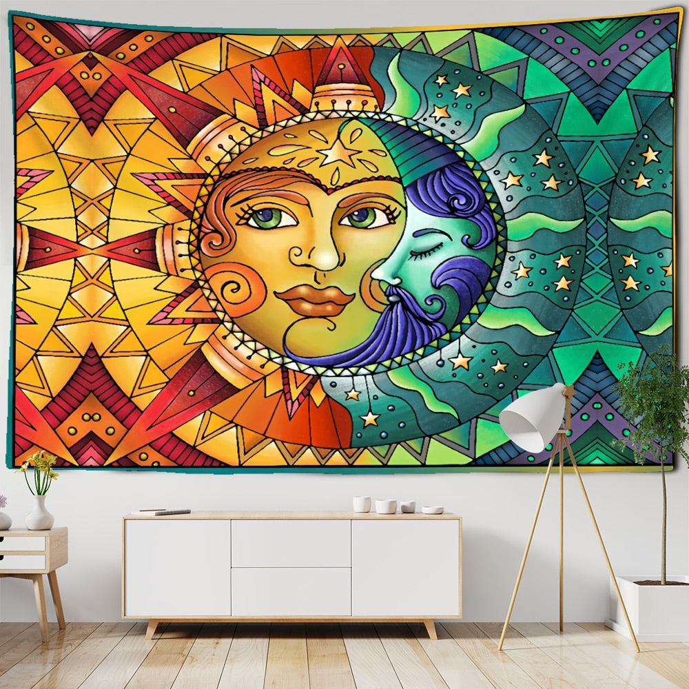 Psychedelic Colorful Sun And Moon Tarot Tapestry Wall Hanging Witchcraft Hippie Abstract Bedroom Home Decor