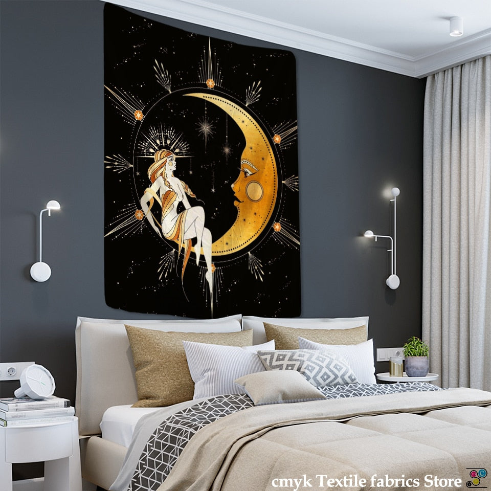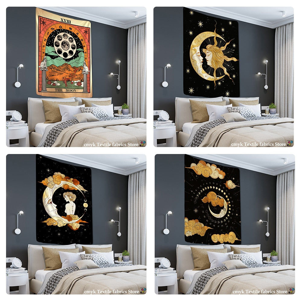Psychedelic Moon Star Tapestry Wall Hanging Bohemian Hippie Tarot Girls Room Dormitory Art Home Decor