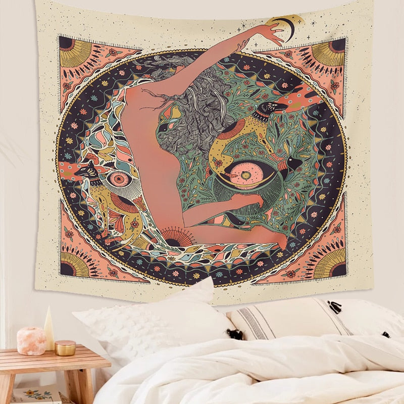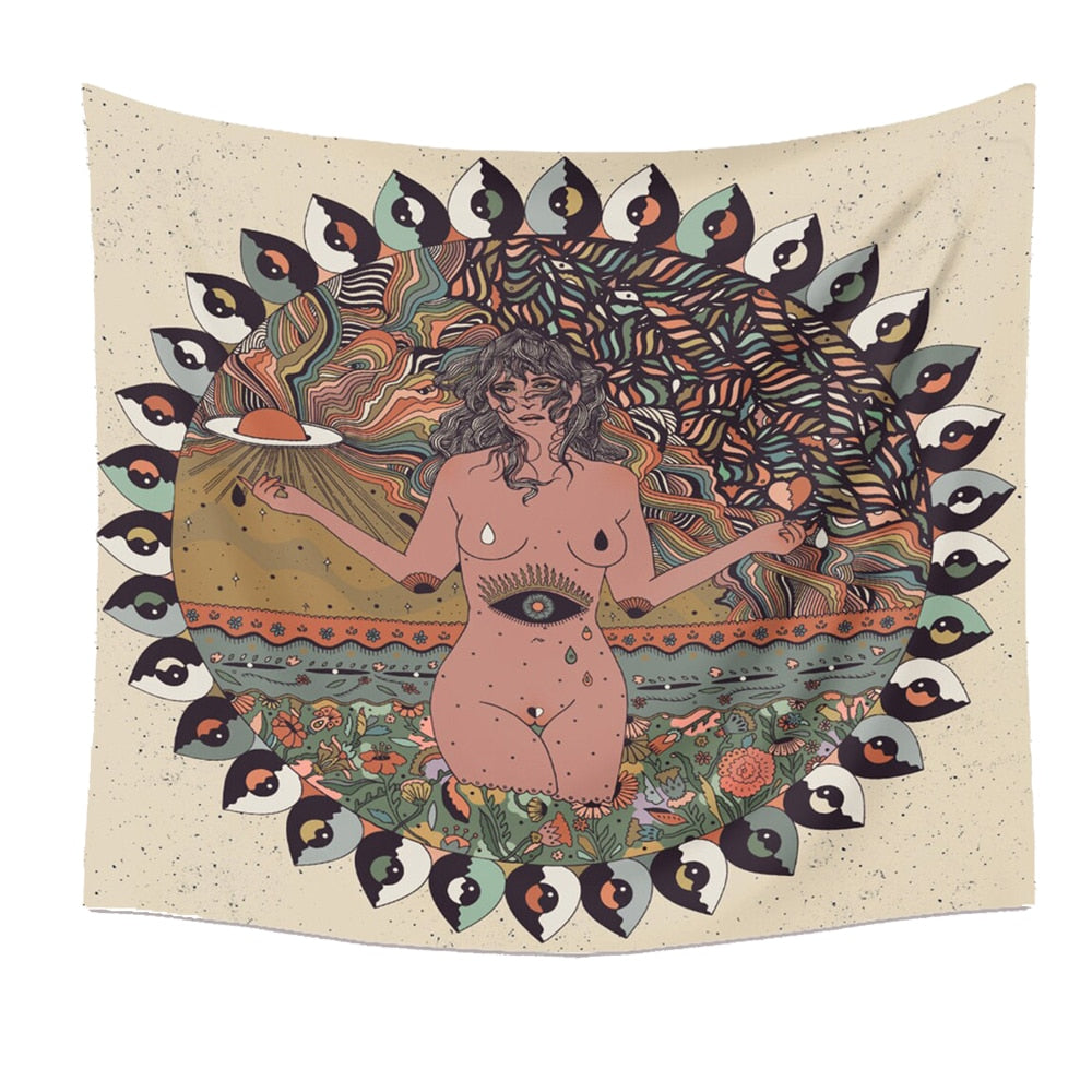 Psychedelic Nude Sexy Woman Skull Lover Tapestry Wall Hanging Trippy Flower Tapestry Fantasy Magic Tapestry Wall Art Home Decor
