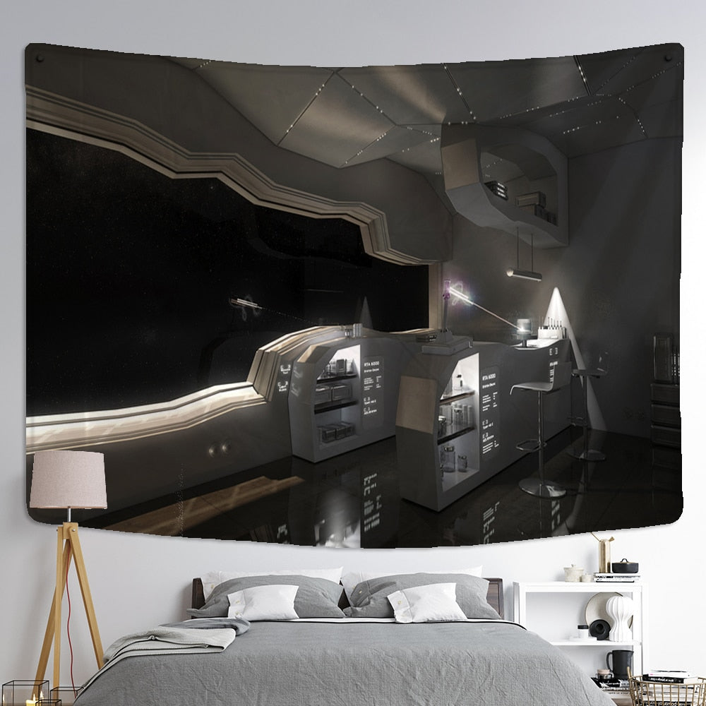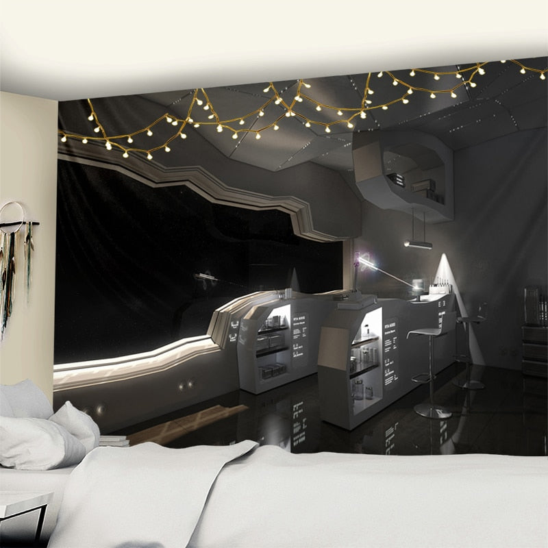 Psychedelic Space Station Tapestry Astronaut Wall Hanging Witchcraft Hippie Wall Tapestry Wall Carpet Boho Decoration Home Decor