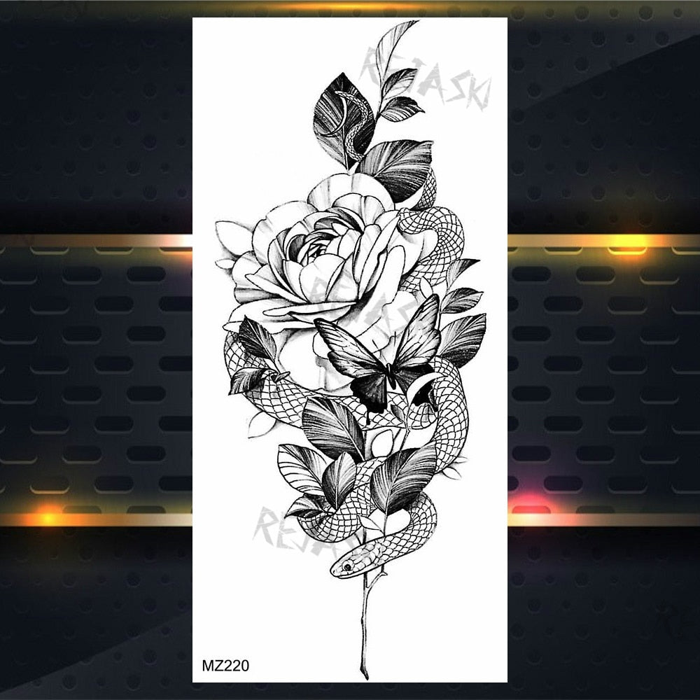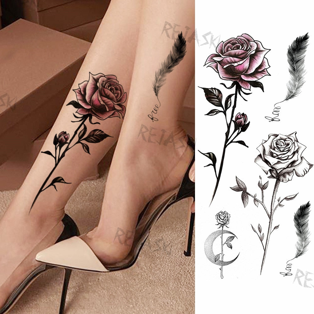 Purple Rose Jewelry Water Transfer Tattoo Stickers Women Body Chest Art Temporary Tattoo Girl Waist Bracelet Flash Tatoos Flower