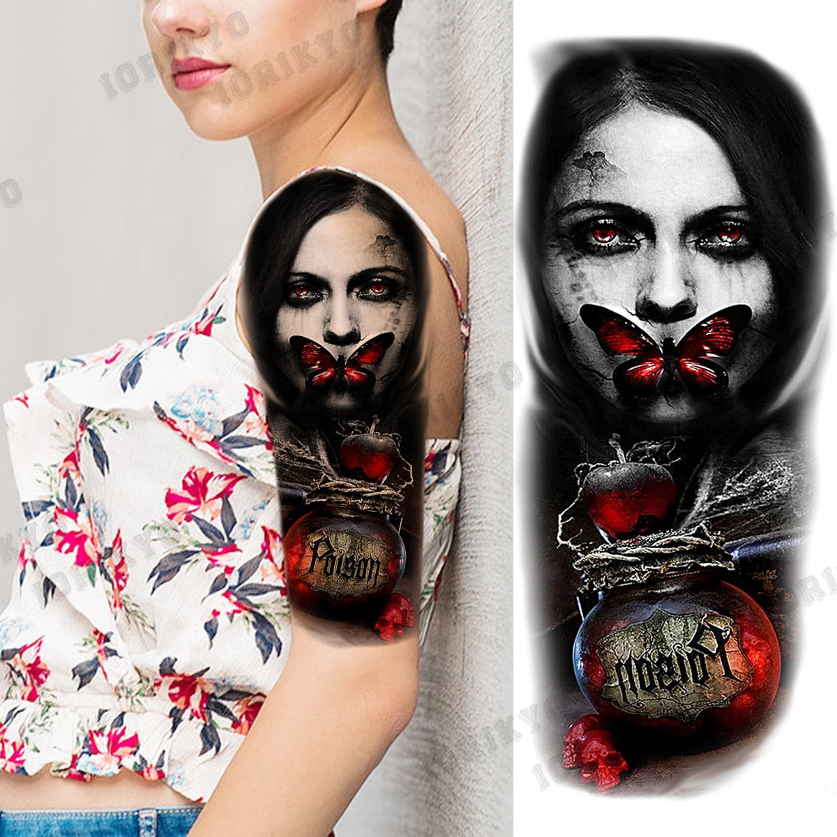 Realistic Devil Skeleton Temporary Tattoos For Men Adult Women Wolf Compass Gangster Fake Tattoo Washable Body Art Tatoo Sticker