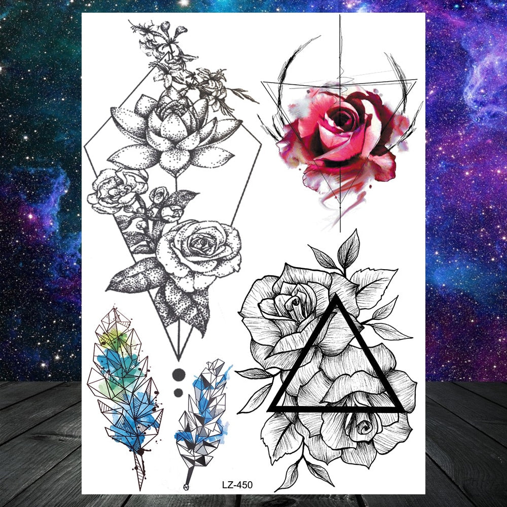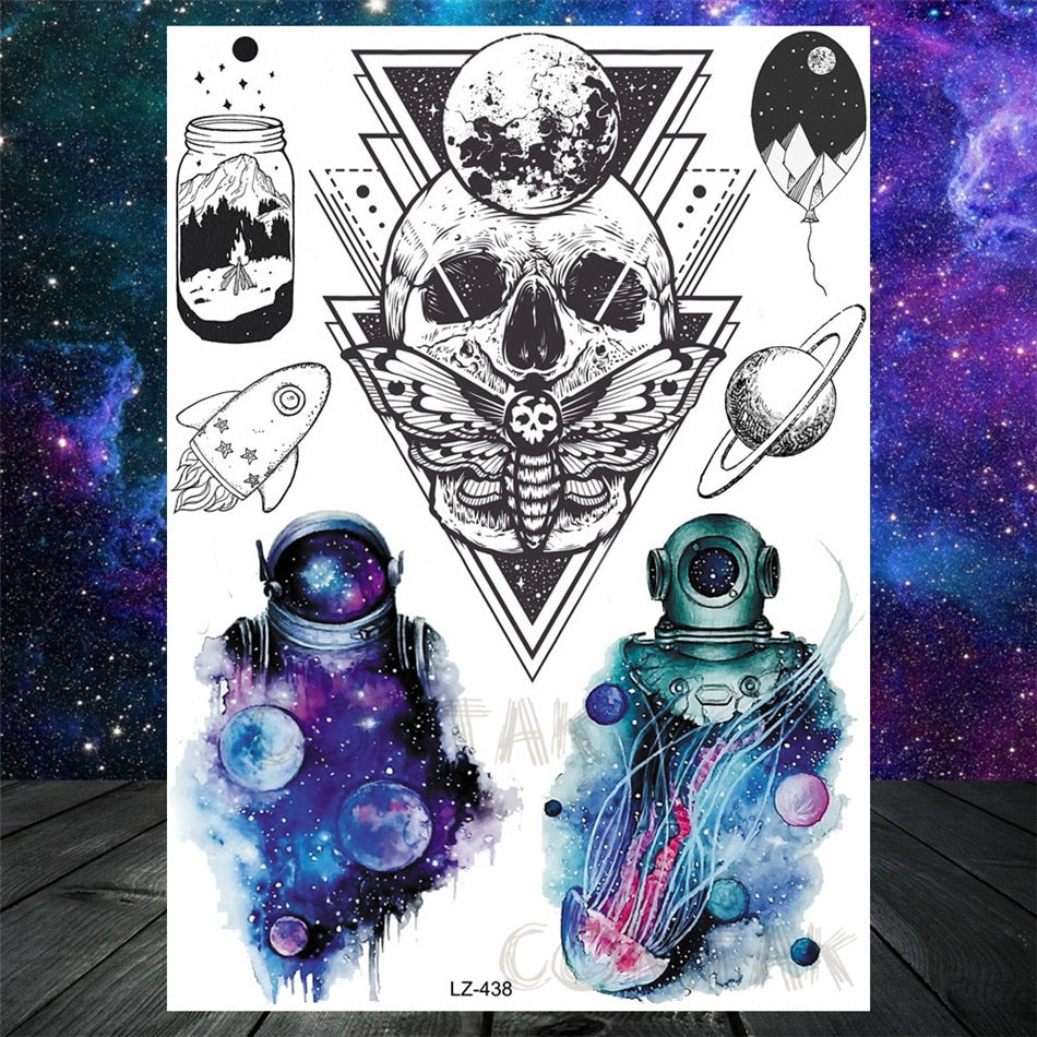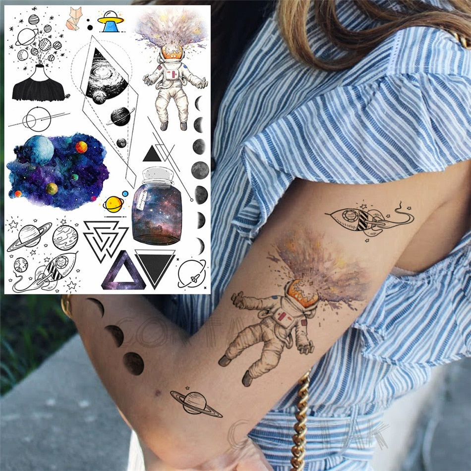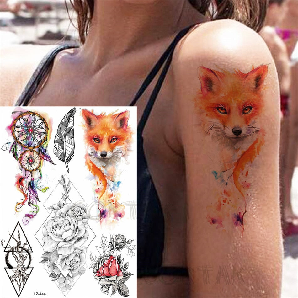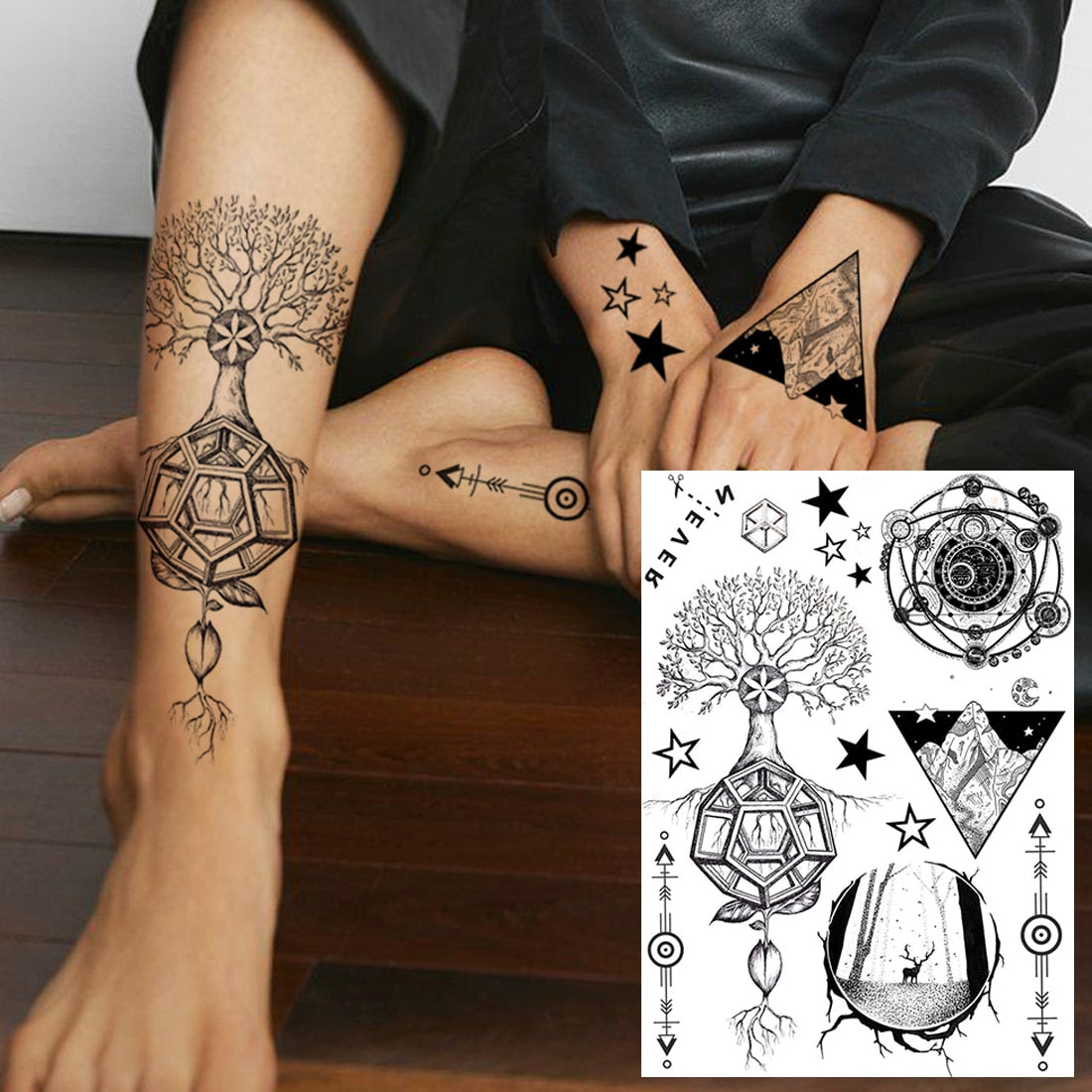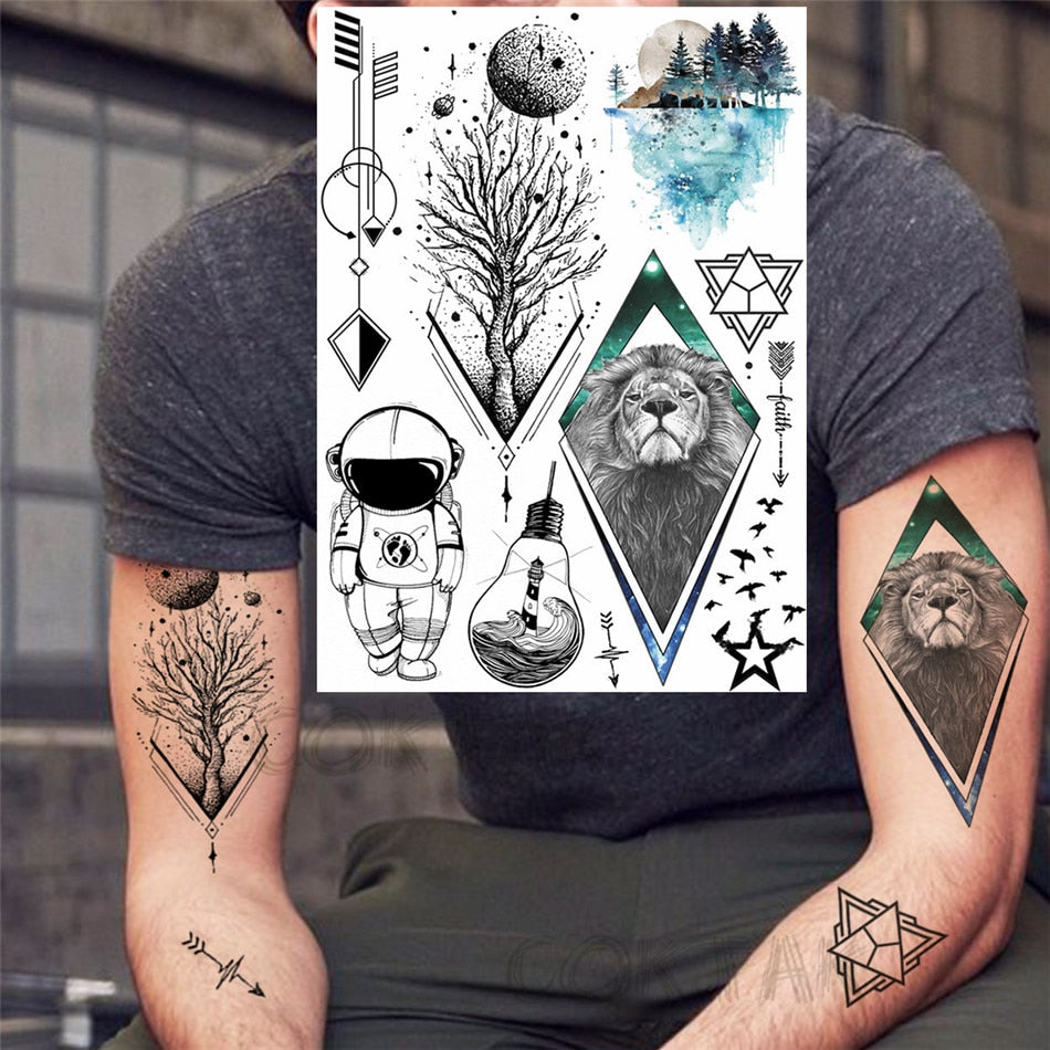 Realistic Fake Black Animal Temporary Tattoos Sticker For Men Women Geometric Wolf Outer Space Tatoo Temporary Decal For Kids