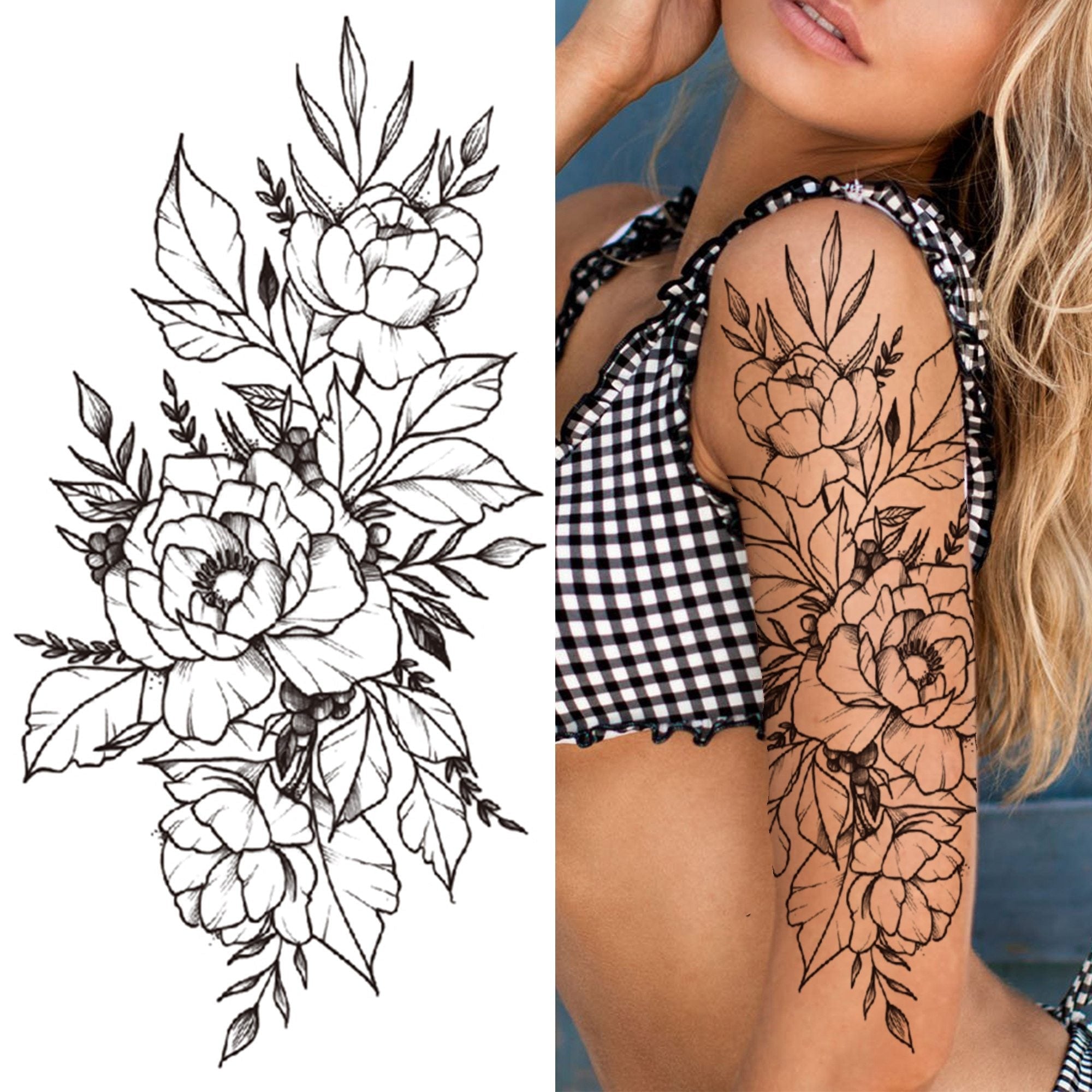 Realistic Fake Peony Temporary Tattoos For Women Girl Black Rose Elephant Flower Tattoo Sticker Tiger Anemone Tatoos Half Sleeve 1118 712