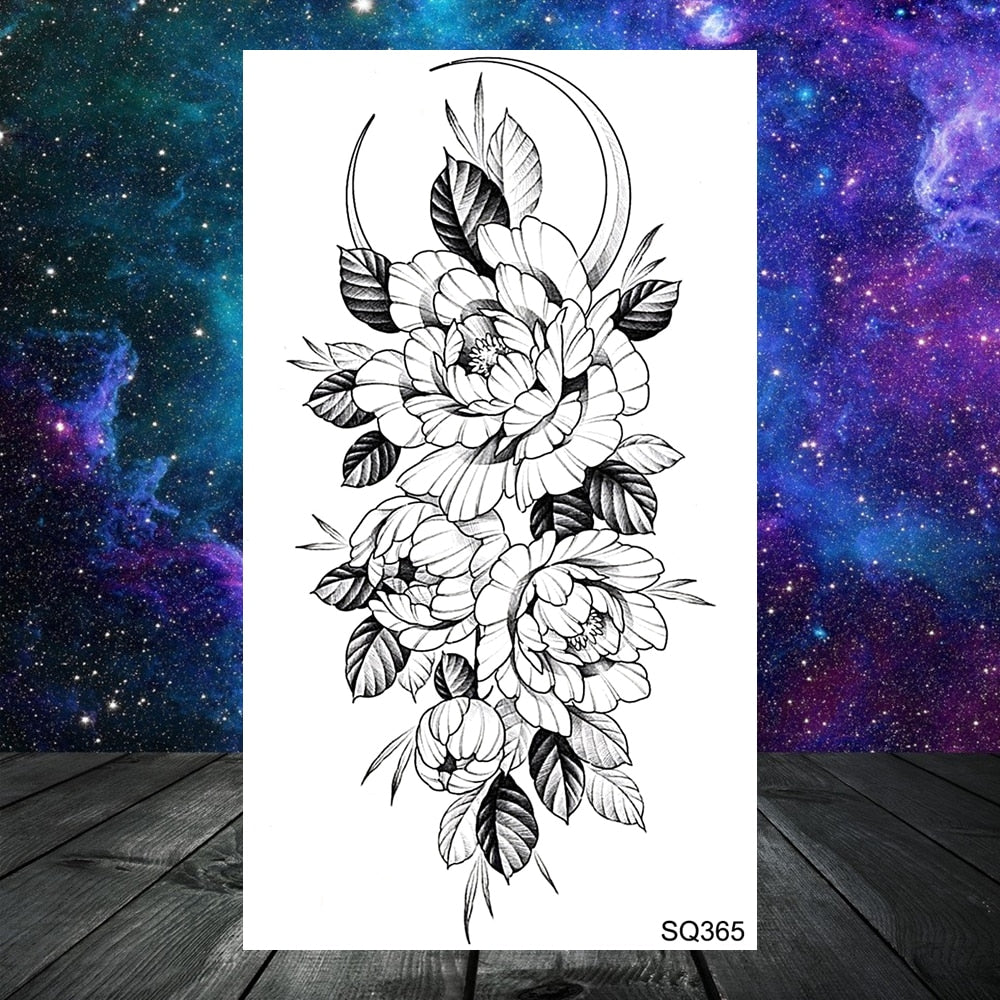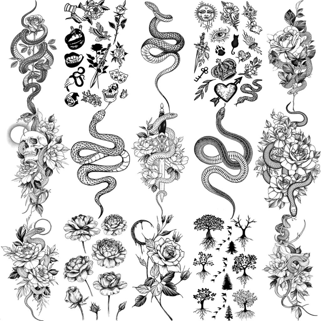 Realistic Rose Flower Snake Temporary Tattoos For Women Adult Skull Peony Lips Sword Tree Fake Tattoo Neck Arm Hands Small Tatoo