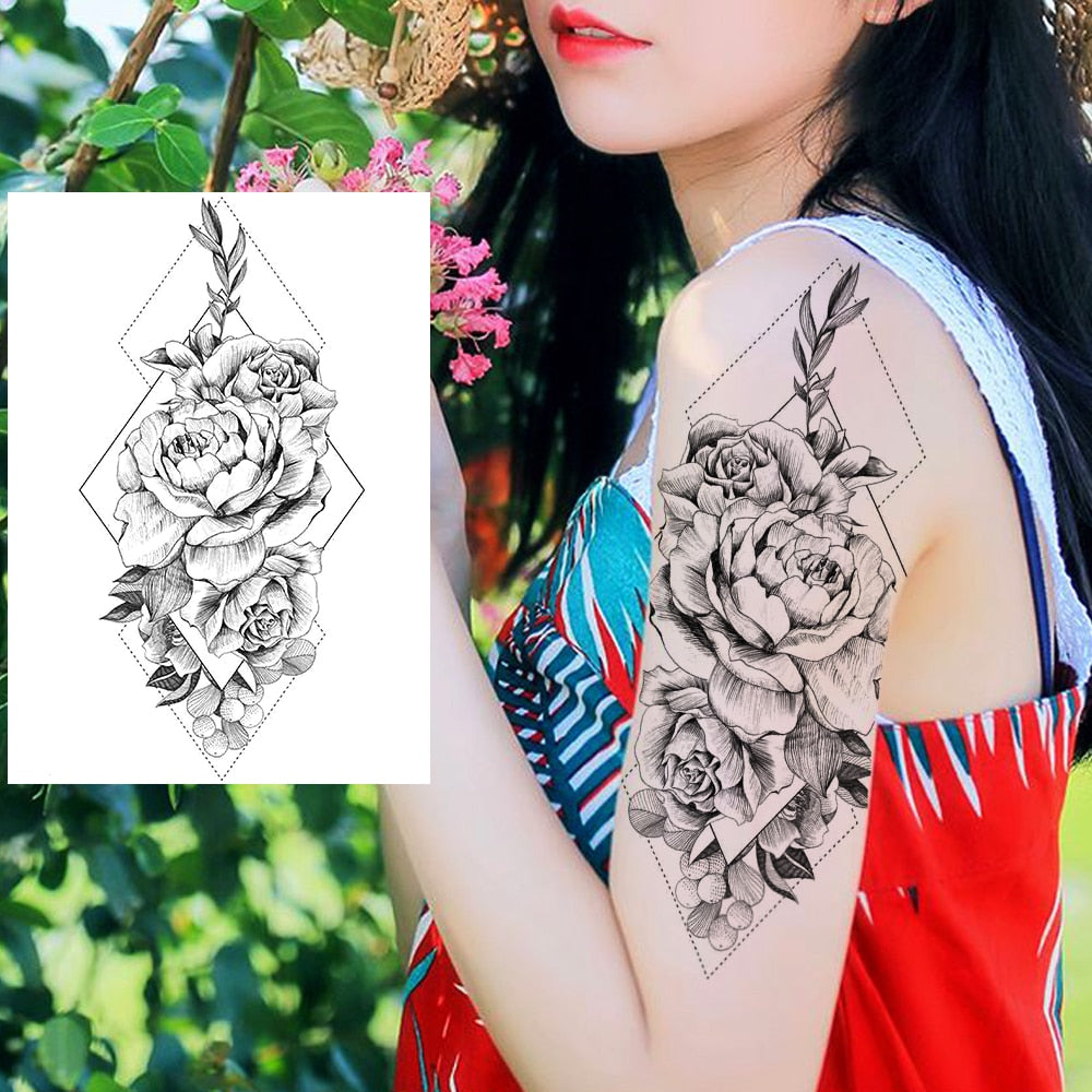 Realistic Sexy Peony Tattoos Temporary Women Adult Flower Arm Tattoos Sticker Waterproof Fake Floral Bloosom Body Leg Art Tatoos