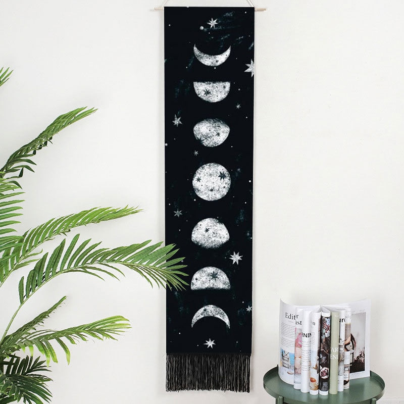Rectangular Bohemia Wall Hanging Snake Tassel Tapestry Black Moon Wall Background Blanket Home Livingroom Office Wall Decoration