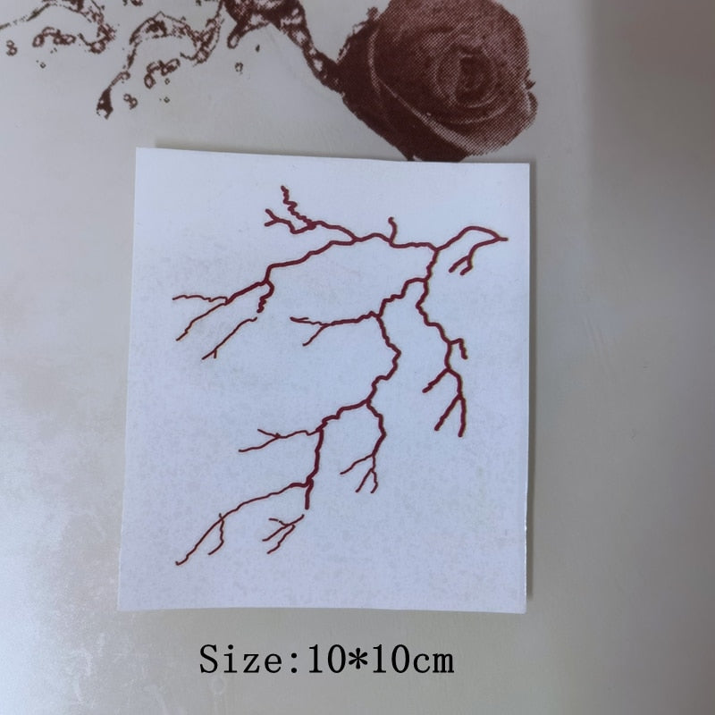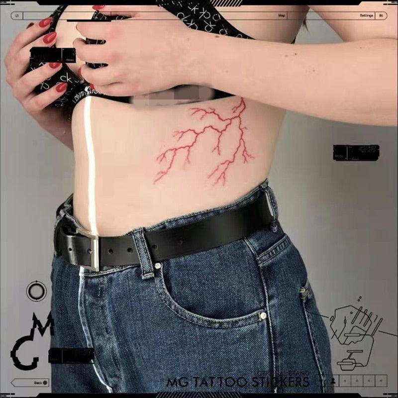 Red Bloodline Lightning Temporary Tattoo Stickers Female Dark Waterproof Black Cool Personality Art Fake Tattoo Waist Arm Tattoo