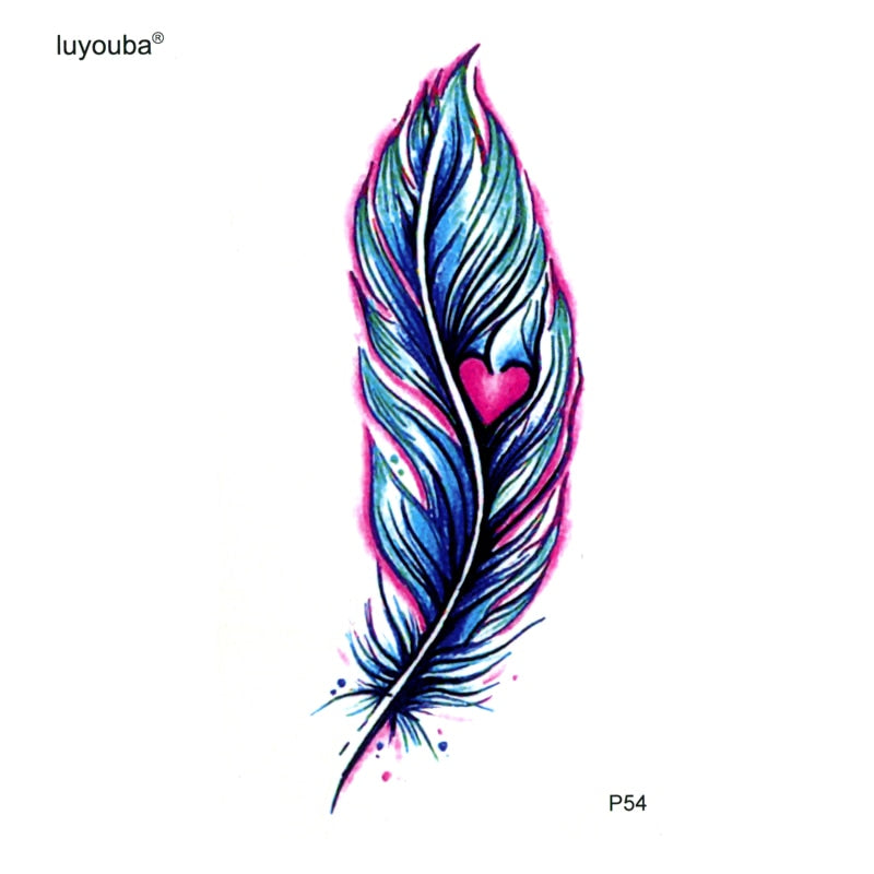 Red Heart Feather Waterproof Temporary Tattoos Men Tatuajes Temporales Glitter Tattoo Sleeve Tatoo henna Tattoo Stickers